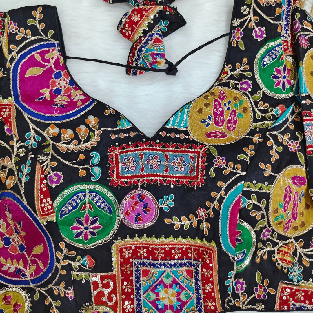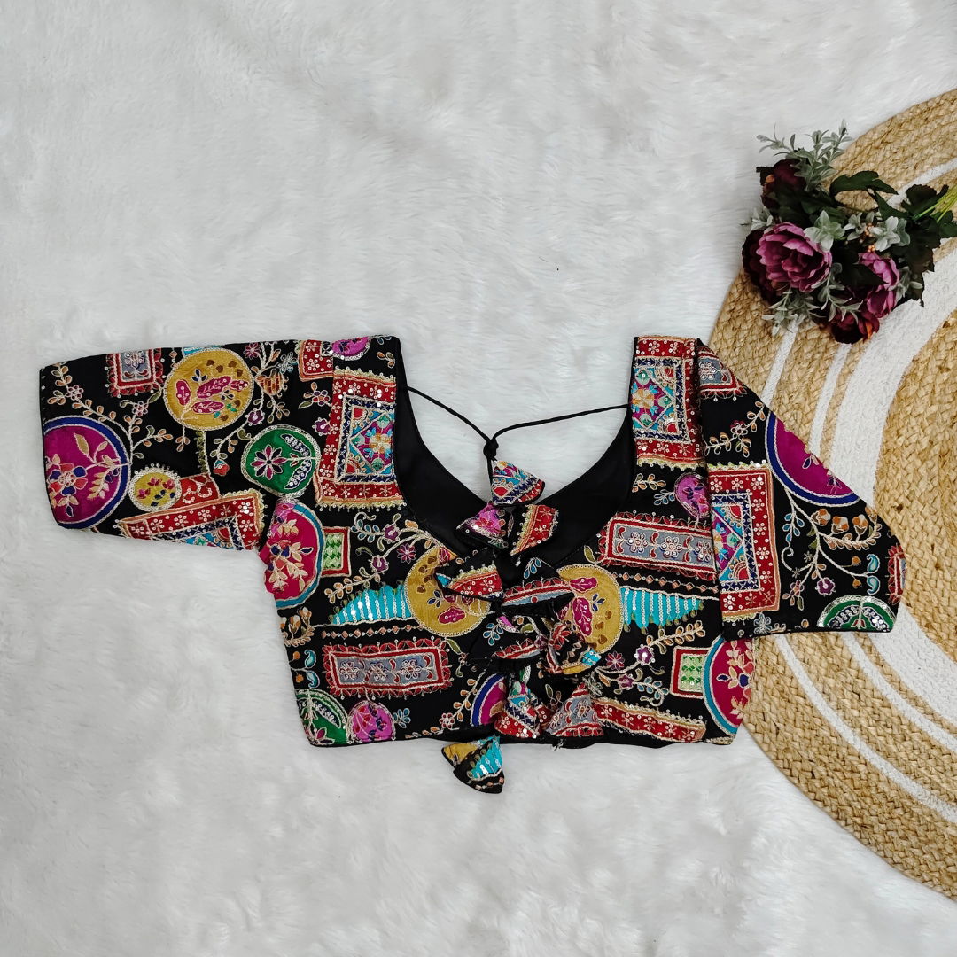 Elegant Chinon fabric blouse with digital print, perfect for Navratri. Lightweight, vibrant, and comfortable, ideal for festive celebrations. Stylish and unique for a standout look.