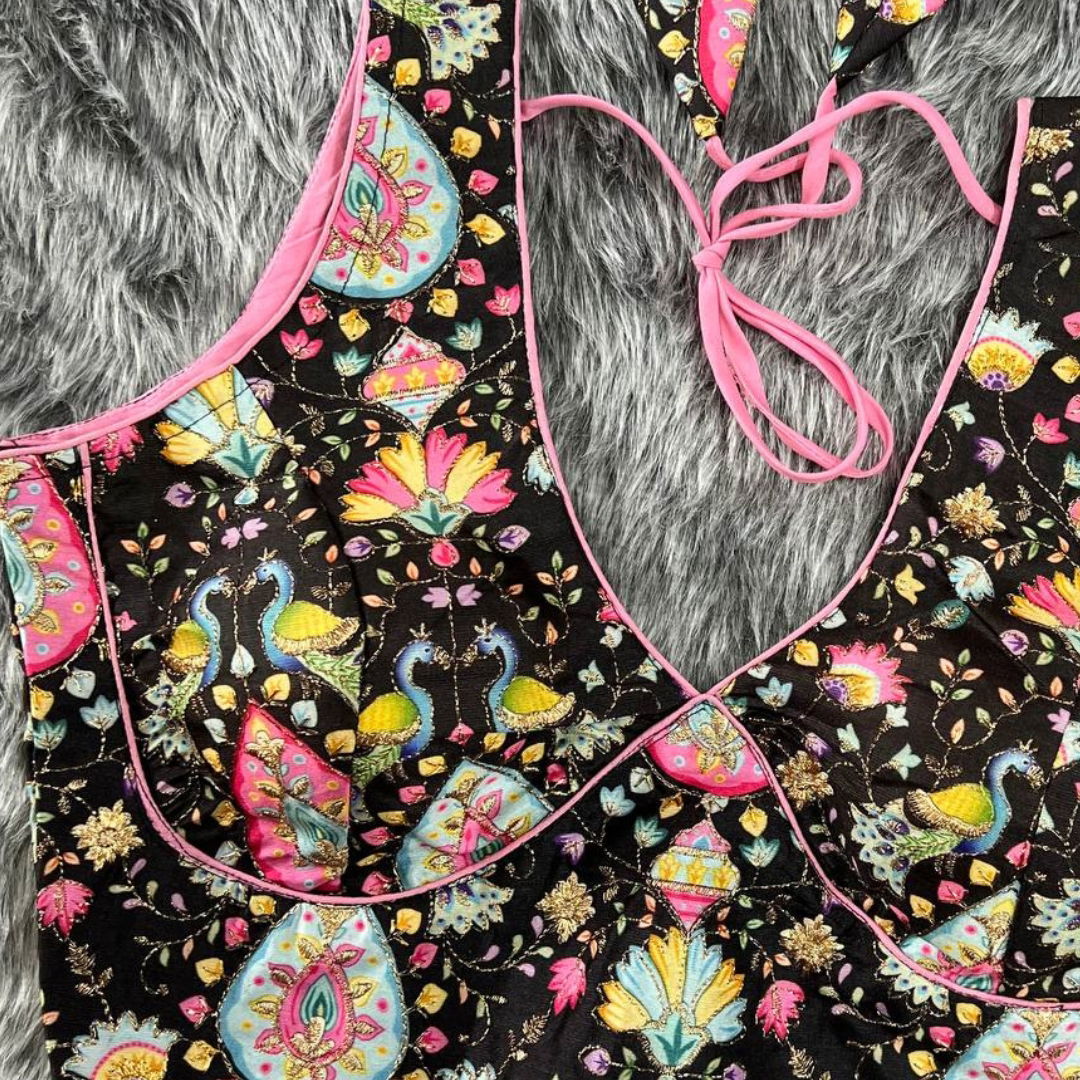 Indulge in sheer elegance with our Phantom Silk Blouse, a masterpiece that seamlessly blends tradition and modernity. The 40-inch blouse is ready to grace you with its beauty, with the flexibility to alter up to 42 inches for the perfect fit.