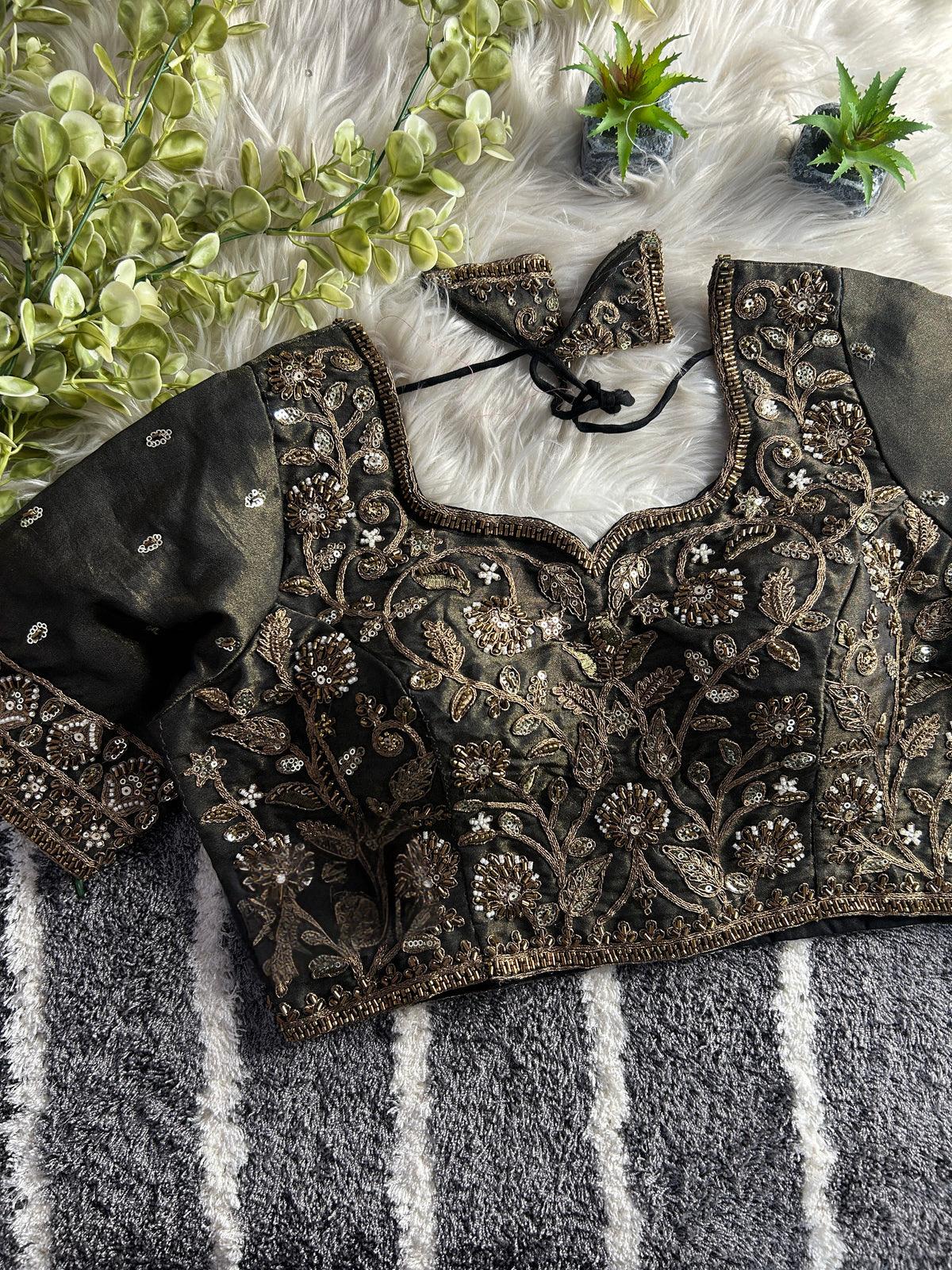 Elevate your bridal and partywear look with this stunning Heavy Stars & Beads Copper Matching Work Bridal Blouse, designed to make you shine on every special occasion. Crafted from Heavy Pure Soft Cosmos Silk, this blouse features intricate handmade sequence and codding thread work, giving it a luxurious, premium finish.