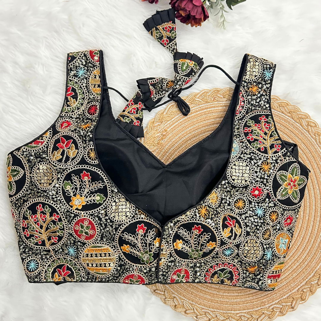 Elevate your style with this Bollywood-inspired Bluming Fox Georgette Blouse, featuring exquisite Codding Embroidery, Thread, and Sequence Work, perfect fitting with stunning finishing and elegant design elements. Blouse Stitched – Yes
