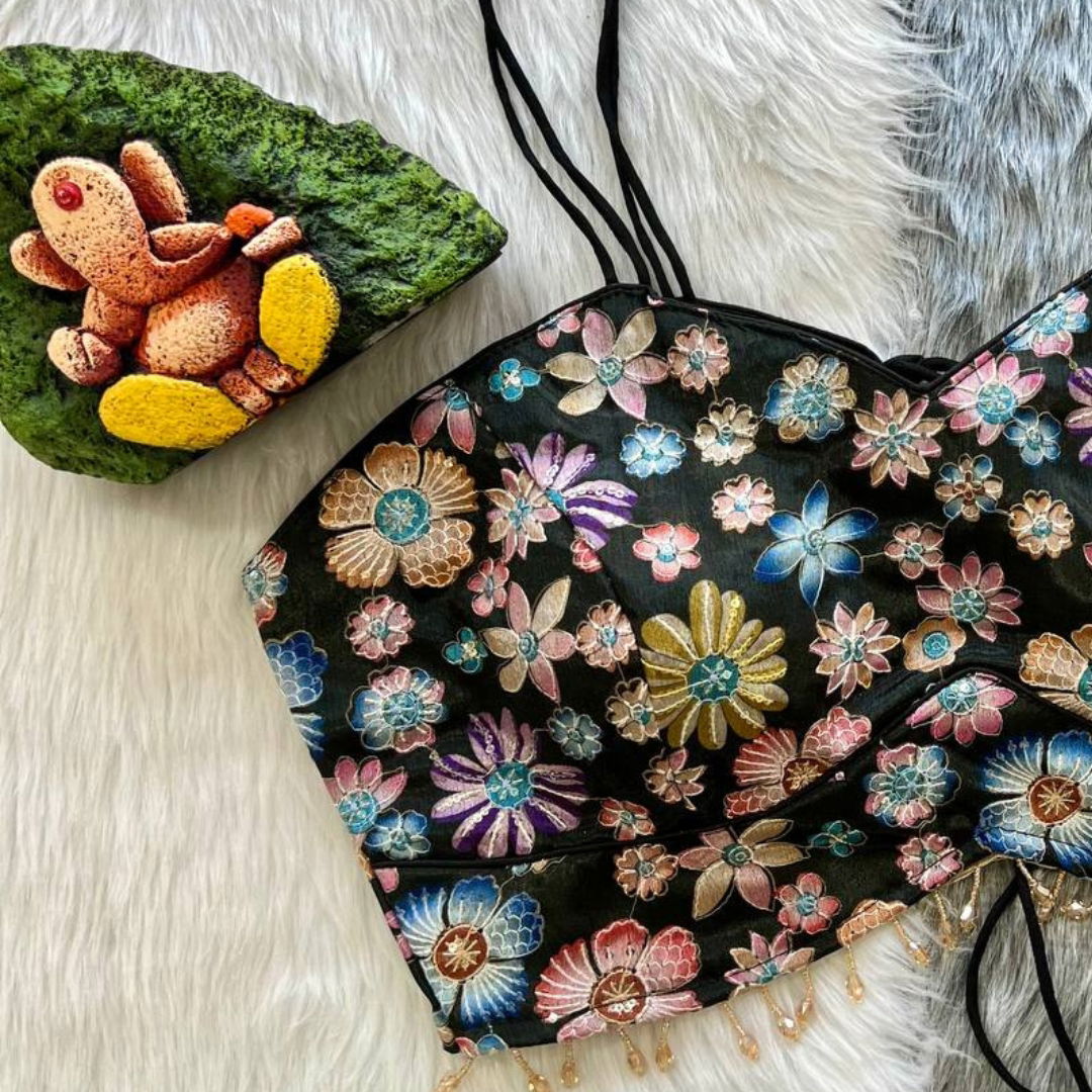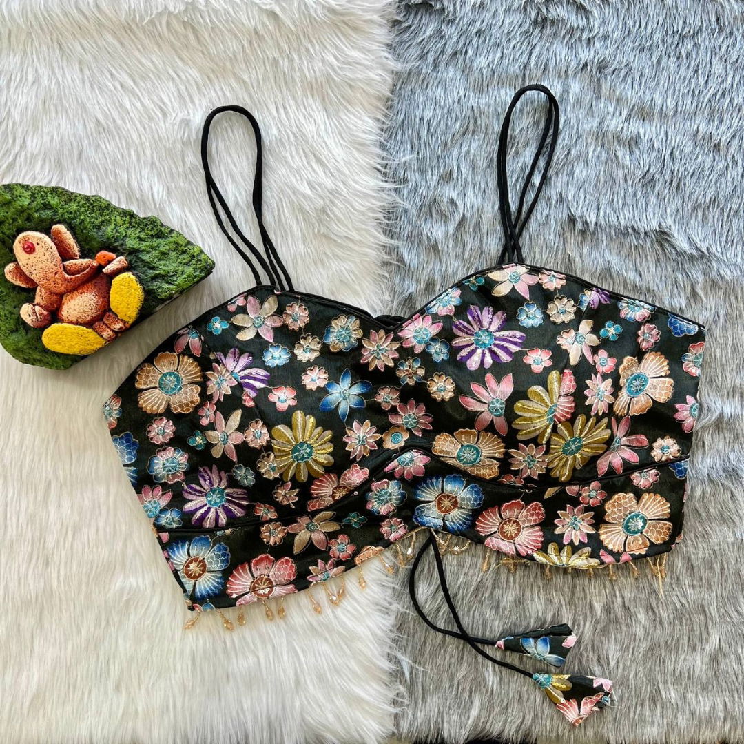 Introducing the all-new "Noodles Strips Western Blouse," a stunning addition to your wardrobe that seamlessly blends sophistication with a touch of whimsy. Elevate your partywear collection with this fancy blouse, boasting intricate heavy embroidery and beautiful handwork lace for a touch of glamour.Crafted from luxurious Heavy Chinon Silk, this blouse not only looks exquisite but also feels incredibly comfortable. The fabric drapes gracefully, enhancing your silhouette with a touch of elegance. The blouse is available in Size 38", ready to be altered effortlessly up to 42 inches for a perfect fit.