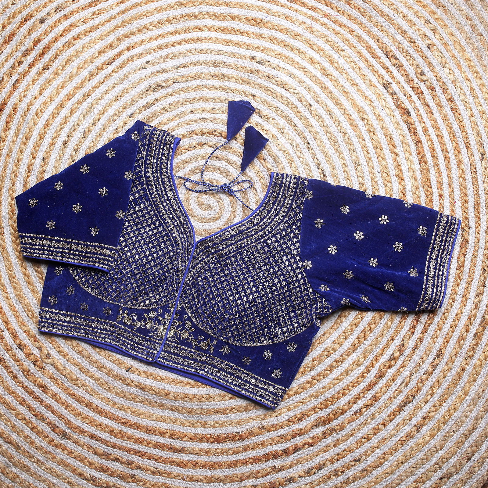 Elegance Redefined: Silky Velvete Blouse adorned with intricate heavy embroidery and delicate sequence touchup. Elevate your style with this stunning piece, blending luxury and grace for a captivating and stylish look