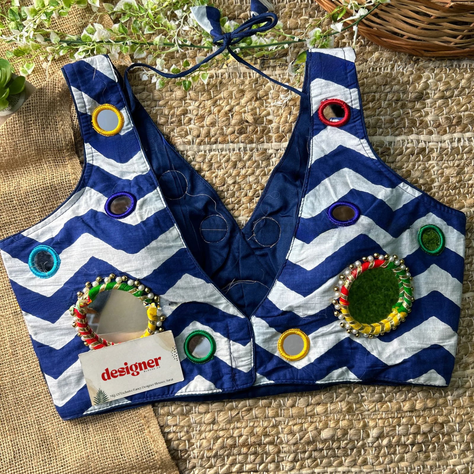 Shine bright this festive season with our Pure Cotton Mirror Work Navratri Blouse. Made for Garba nights and Dandiya events, this readymade blouse features handcrafted original mirror work on pure cotton fabric. Lightweight and breathable, it's the perfect ethnic pick for your Navratri outfit. Celebrate tradition with a modern flair.