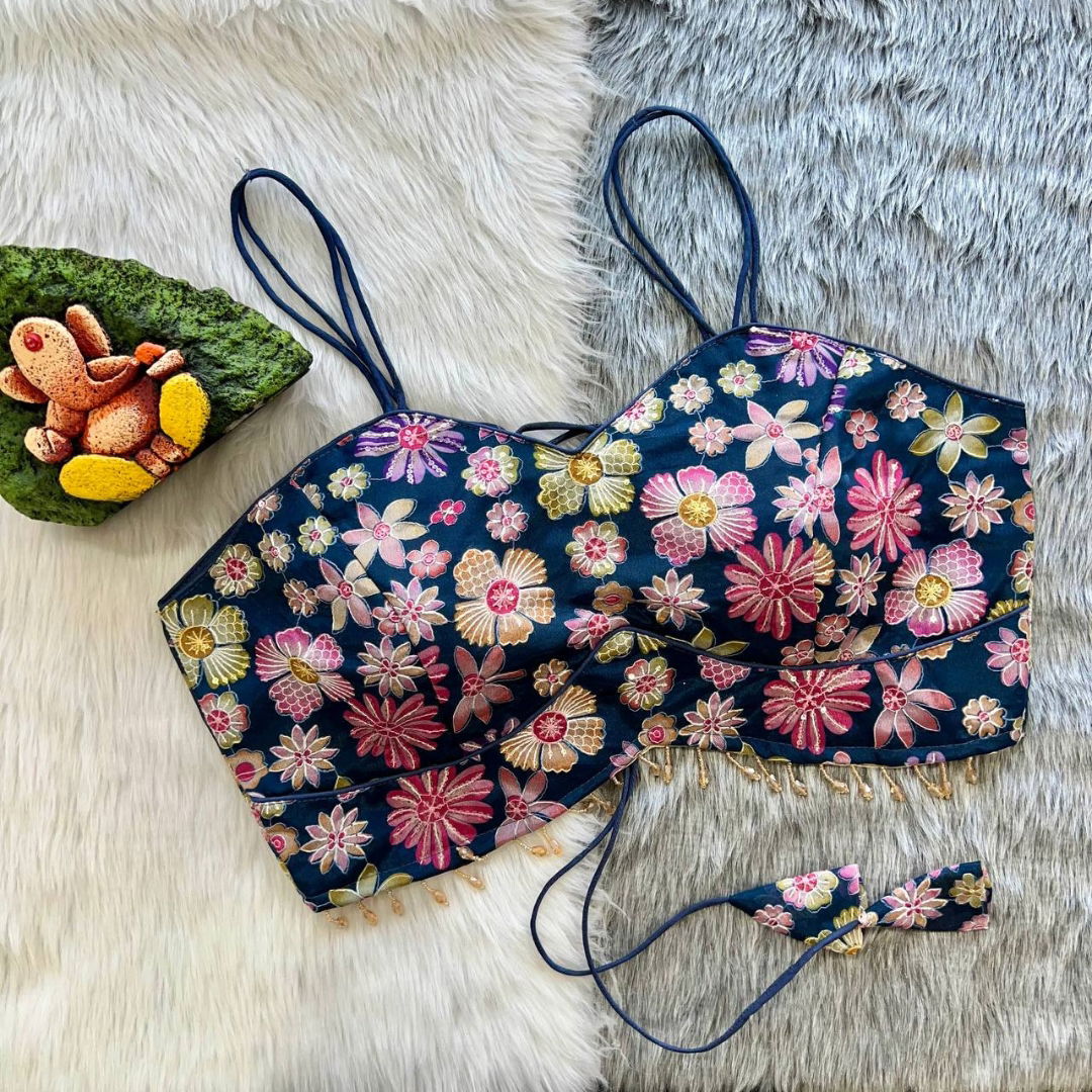 Introducing the all-new "Noodles Strips Western Blouse," a stunning addition to your wardrobe that seamlessly blends sophistication with a touch of whimsy. Elevate your partywear collection with this fancy blouse, boasting intricate heavy embroidery and beautiful handwork lace for a touch of glamour.Crafted from luxurious Heavy Chinon Silk, this blouse not only looks exquisite but also feels incredibly comfortable. The fabric drapes gracefully, enhancing your silhouette with a touch of elegance. The blouse is available in Size 38", ready to be altered effortlessly up to 42 inches for a perfect fit.
