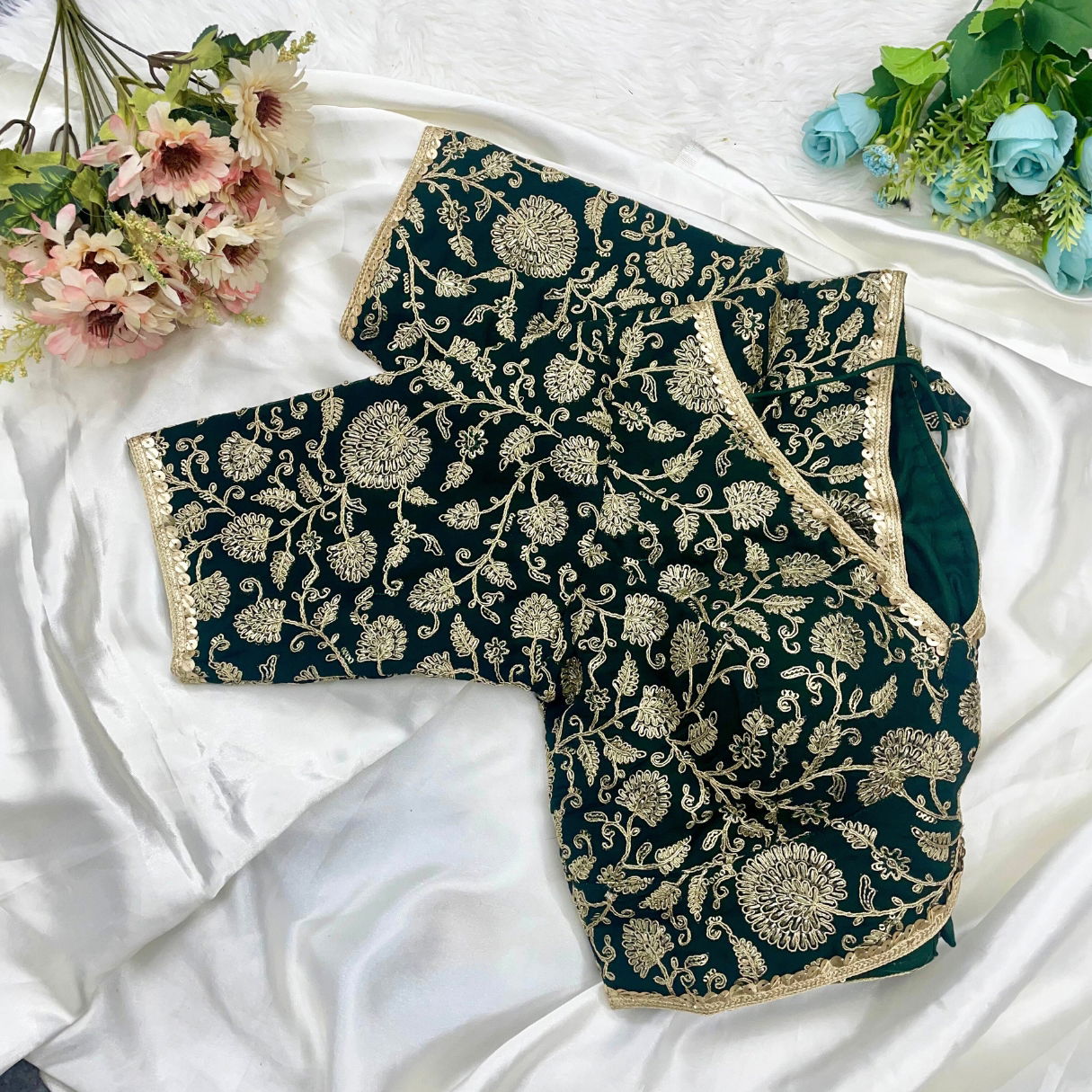 Make a bold statement with this stunning black deep neck blouse featuring intricate golden thread embroidery. Perfect for festive and party occasions, this readymade blouse blends tradition with a touch of glamour. Designed for confident women, our readymade blouse offers timeless elegance with unmatched comfort and graceful detailing in every stitch.