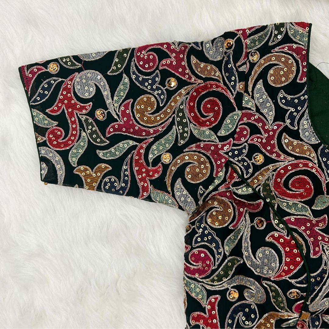 Stunning Bluming Fox Georgette Blouse with Heavy 12 Nidels, Thread, and Sequence Work, ensuring a perfect fit with exquisite finishing and intricate detailing