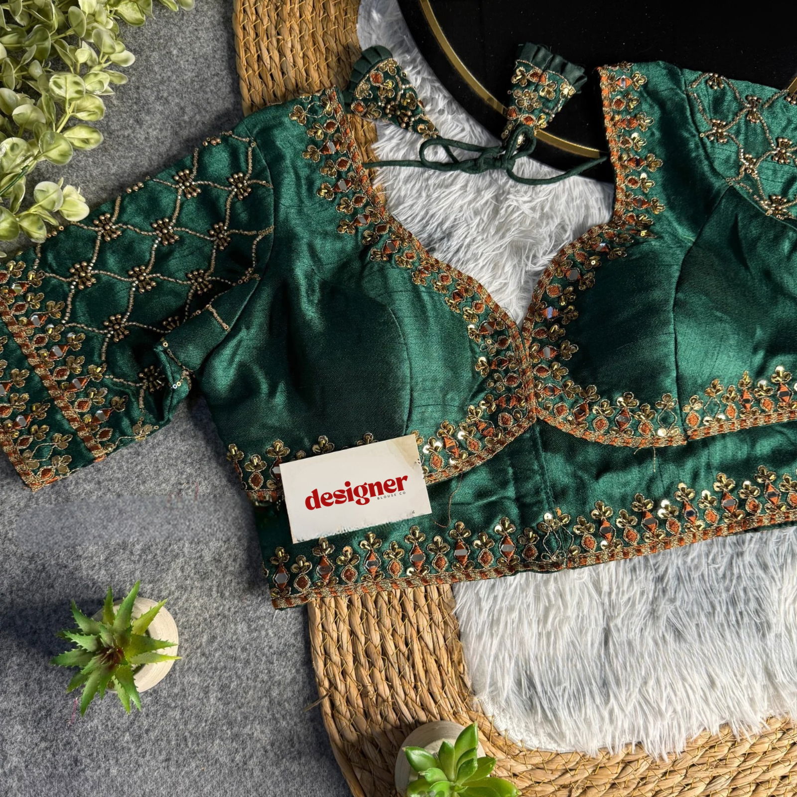 Elevate your bridal look with this Italian Silk heavy embroidery and beads work wedding blouse. Featuring a rich designer finish, padded comfort and elegant sleeves, it pairs beautifully with any saree or lehenga for weddings, receptions and grand functions, giving you a royal, timeless and luxurious appearance all day long.