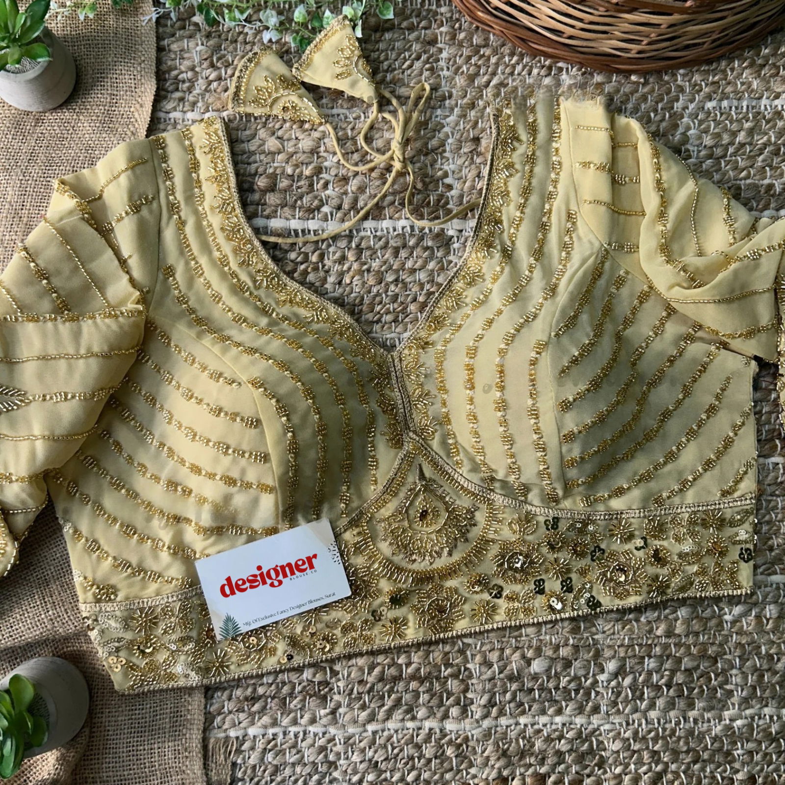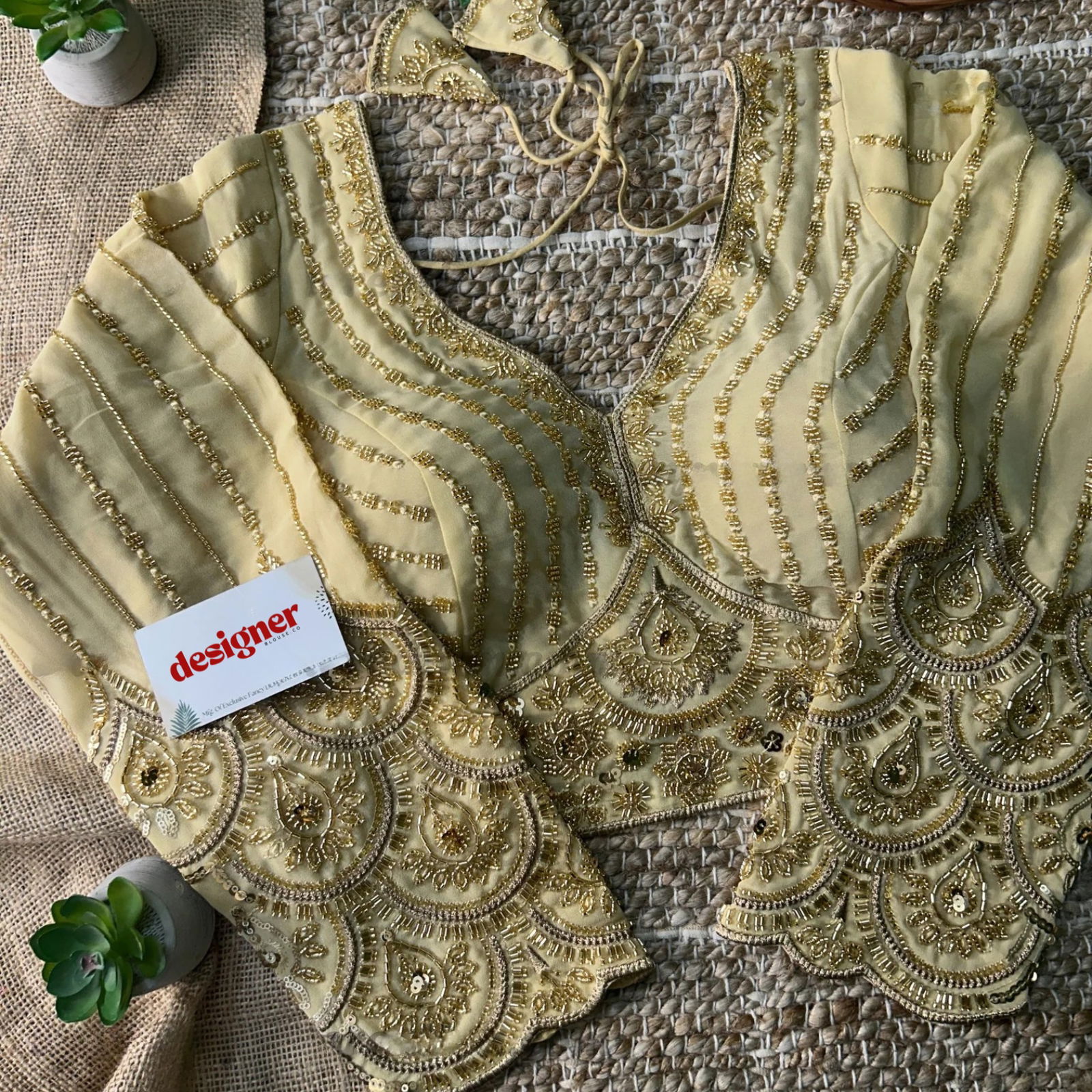 Elevate your ethnic charm with this elegant readymade designer blouse in Pure Fox Georgette. Adorned with detailed hand embroidery and beadwork on the front and sleeves, this long sleeve blouse is a perfect pick for weddings and festive occasions. A luxurious, padded piece designed for comfort and graceful appeal.