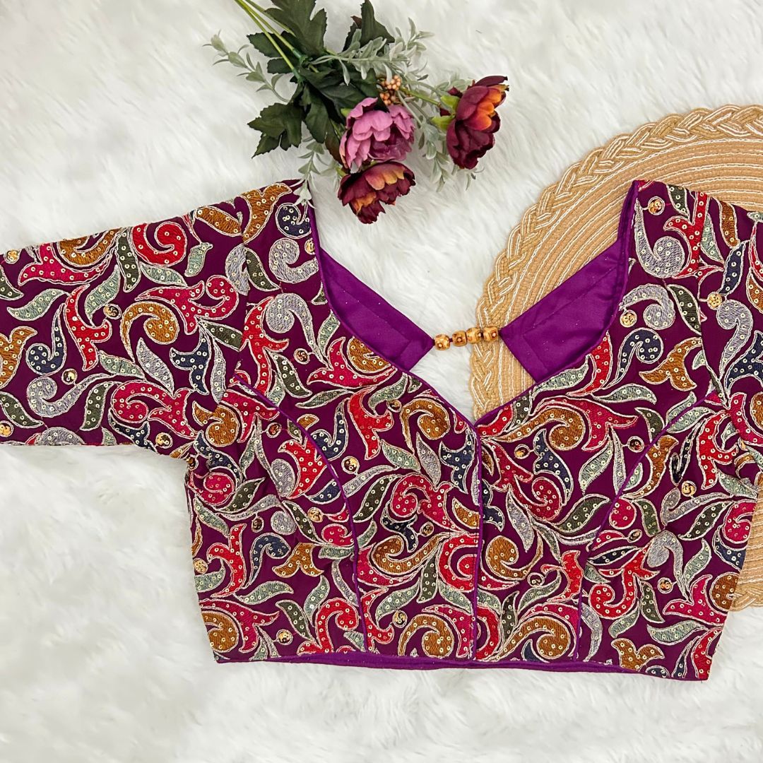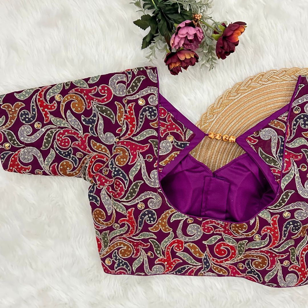 Stunning Bluming Fox Georgette Blouse with Heavy 12 Nidels, Thread, and Sequence Work, ensuring a perfect fit with exquisite finishing and intricate detailing