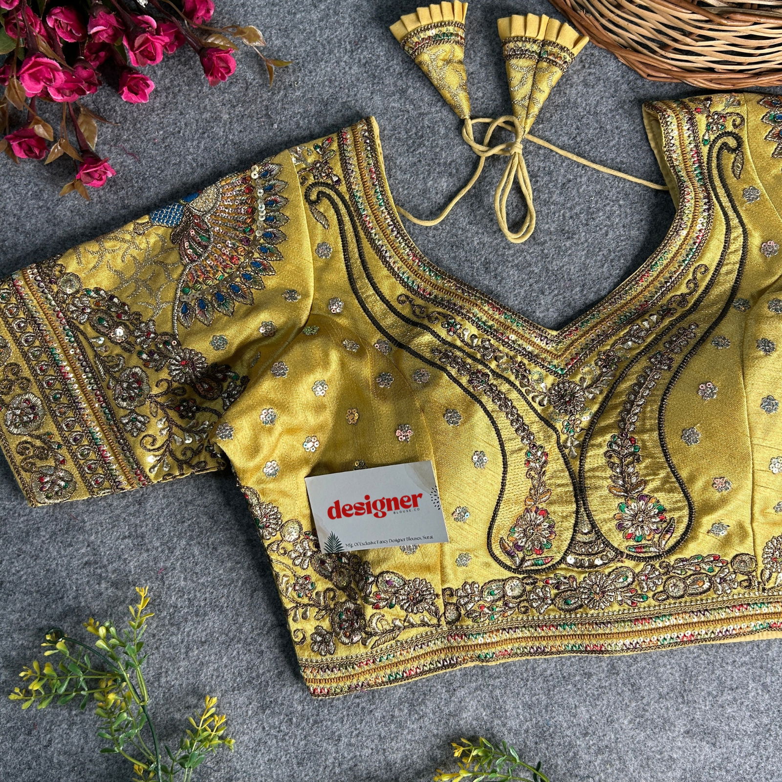 Elevate your wedding or party look with this exquisite heavy Italian silk blouse featuring 3D sequin detailing and unique embroidery work. Designed for comfort and glamour, it includes, soft padding, and flawless stitching. The back-open style with handcrafted finishing makes it a standout choice for festive occasions.