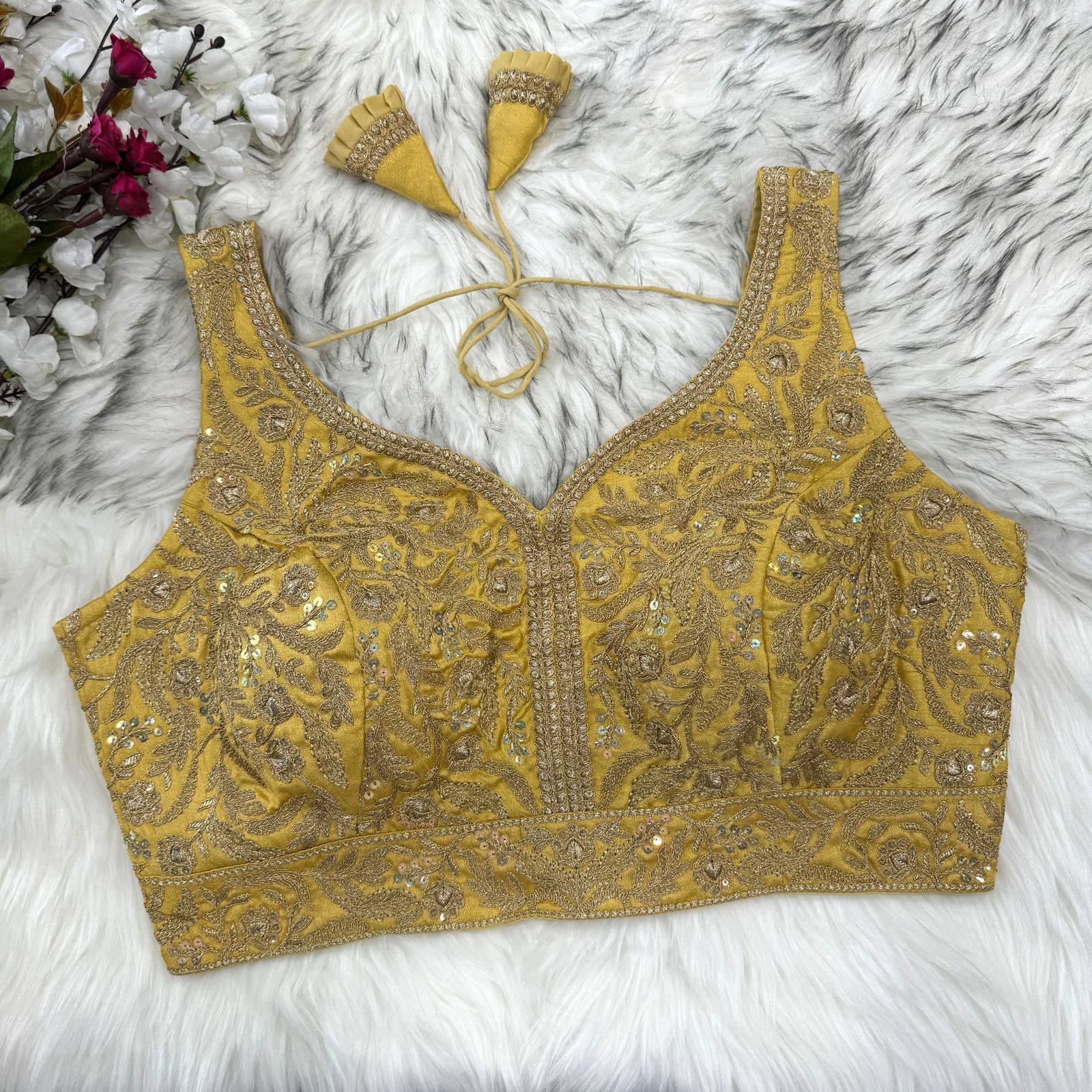 Enhance your bridal look with this stunning fancy bridal blouse, crafted from luxurious heavy Italian silk. Featuring exquisite embroidery, heavy stitching, and soft padding for a perfect fit, this masterpiece is designed for elegance. With 12-inch attached sleeves, a back-open style, and beautiful latkans, it’s perfect for any wedding occasion. Ready in size 40, alterable up to 42 inches.