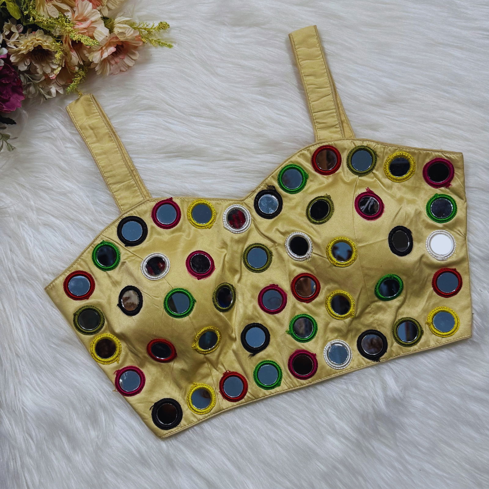 Celebrate this Navratri in style with our vibrant Silk mirror work blouse. Adorned with intricate Mirror work, it’s a perfect choice for garba nights and festive occasions. The soft cotton lining, perfect fit, and traditional charm make it a must-have partywear blouse for your ethnic wardrobe.