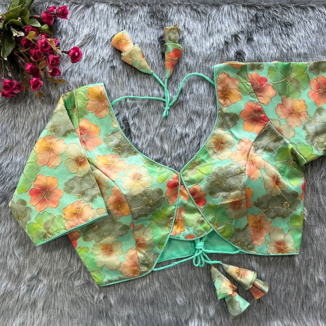 Introducing our exquisite "Fancy Partywear Blouse" crafted for those who appreciate timeless elegance. This blouse features intricate heavy embroidery with a stunning fancy pattern, elevating your style quotient effortlessly. Made from luxurious Heavy Malai Silk, the fabric ensures comfort and durability. The blouse comes in a size 38” ready to alter up to 42 inches, catering to various body types. The 10-inch long sleeves add a touch of sophistication, while the beautiful back open style with heavy stitching and padding enhances its overall allure. Complete with gorgeous latkans, this blouse is a perfect choice for any special occasion, making you stand out with its captivating design.
