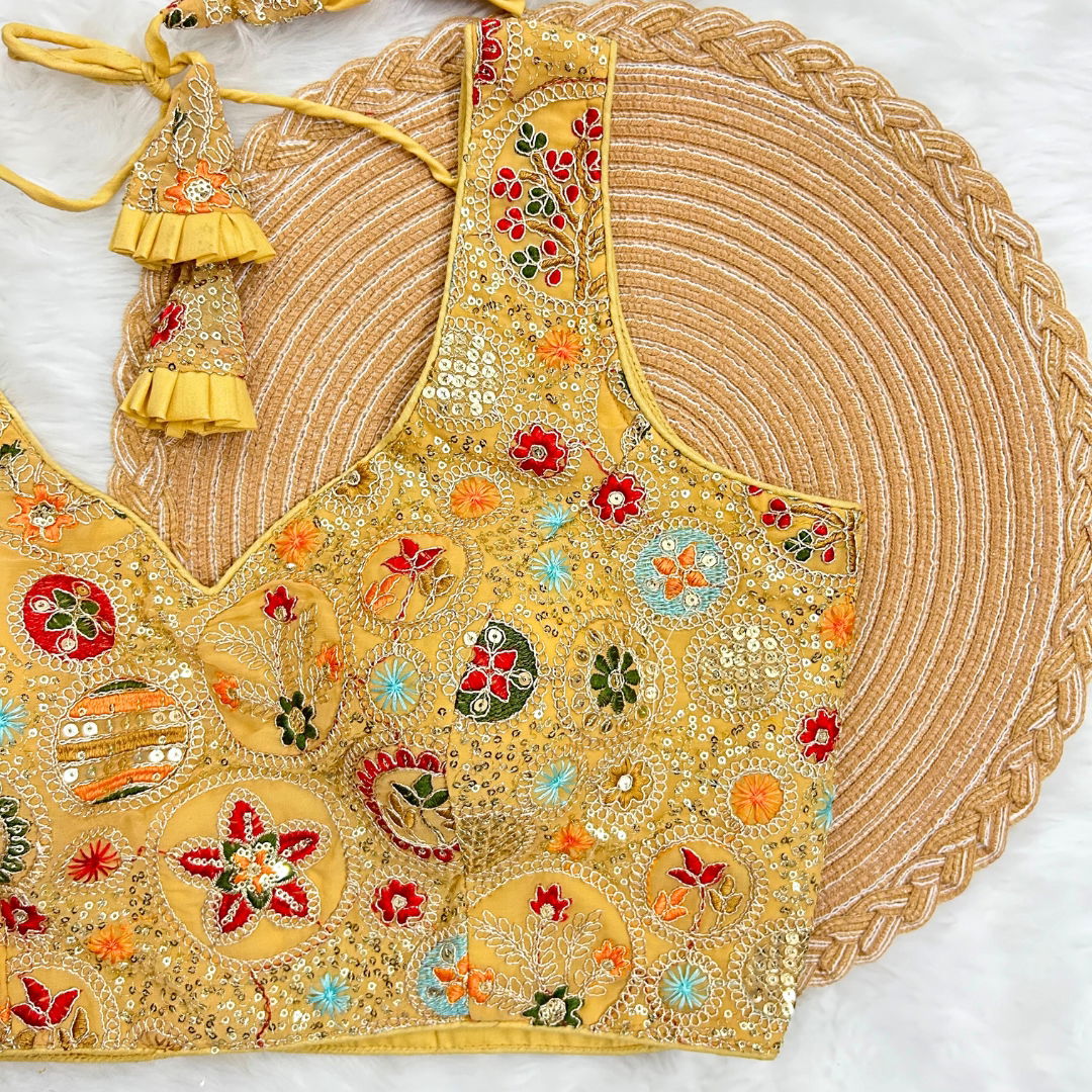 Elevate your style with this Bollywood-inspired Bluming Fox Georgette Blouse, featuring exquisite Codding Embroidery, Thread, and Sequence Work, perfect fitting with stunning finishing and elegant design elements. Blouse Stitched – Yes