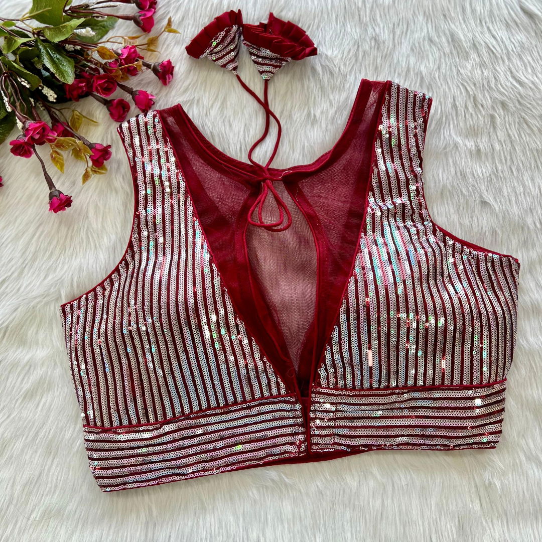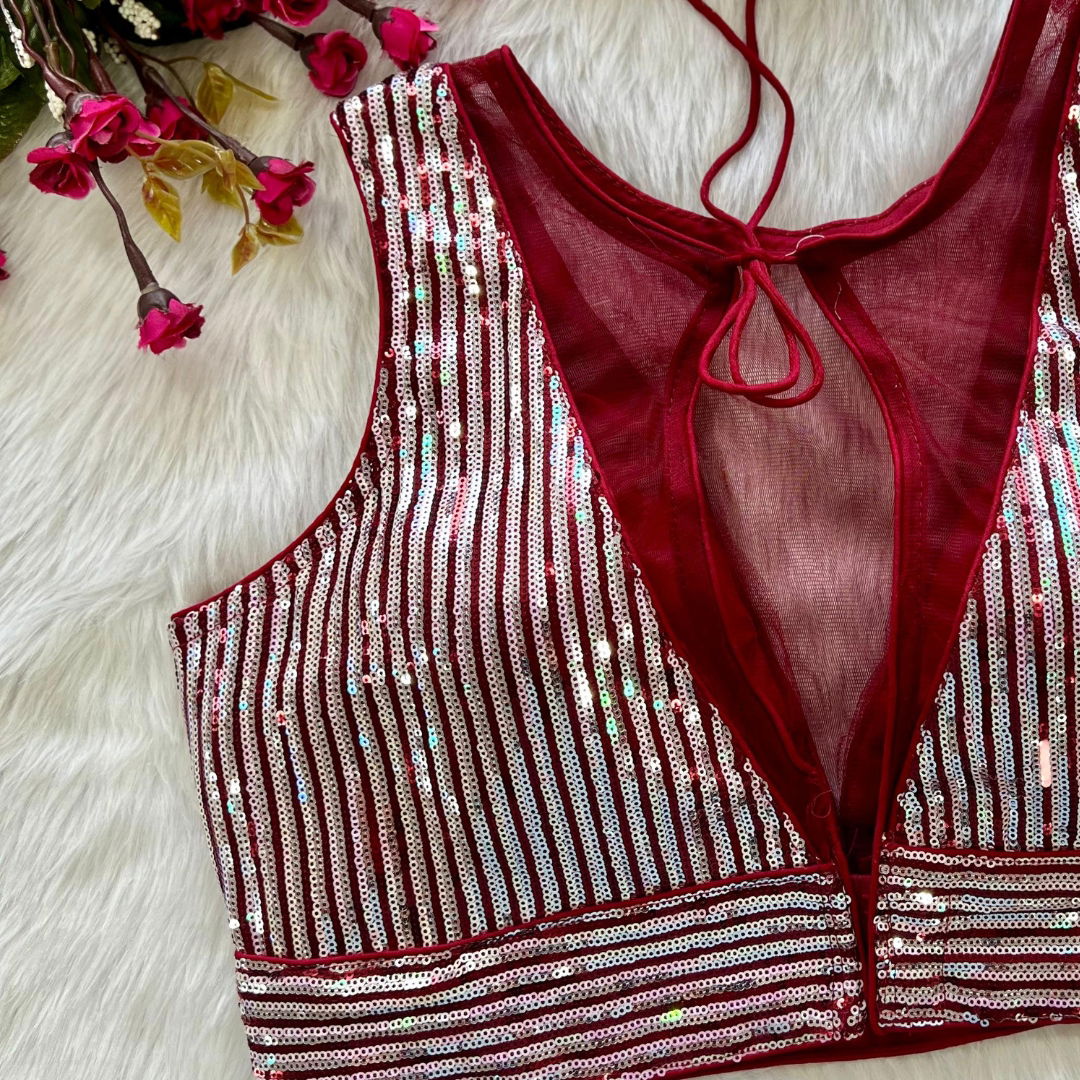 Indulge in glamour with our 'Heavy Imported Net' Blouse. Available in Plus Size 38", it's ready to wear and alterable up to 40 inches, featuring a beautiful design with Heavy Stitching, Heavy Padding, and a chic Back Open Style for a perfect blend of style and comfort