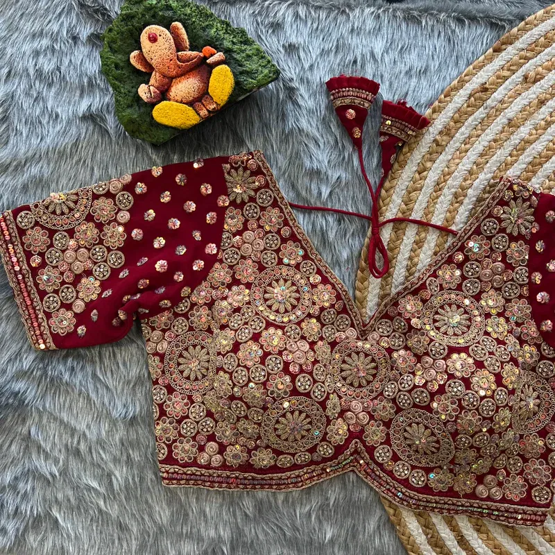 This beautiful designer blouse is made from premium pure fox georgette, highlighted with intricate embroidery and fine handwork. Designed with a back open hook style and a comfortable fit, it’s perfect for festive and wedding occasions. Comes with ample margin to alter from size 34 up to 44 for flexible fitting.