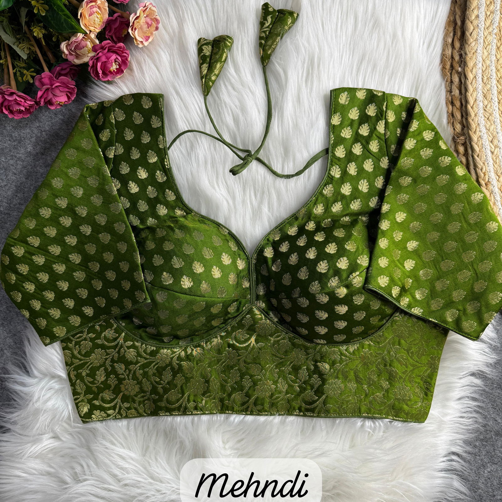Elevate your ethnic style with this Sabyasachi-inspired pure nylon jacquard blouse. Featuring intricate detailing, a luxurious nylon jacquard fabric, and a comfortable pure Indo cotton lining, it’s perfect for parties and special occasions. Designed with heavy stitching, padded comfort, and a back-open style, it’s alterable from 38 to 40 inches for a perfect fit.