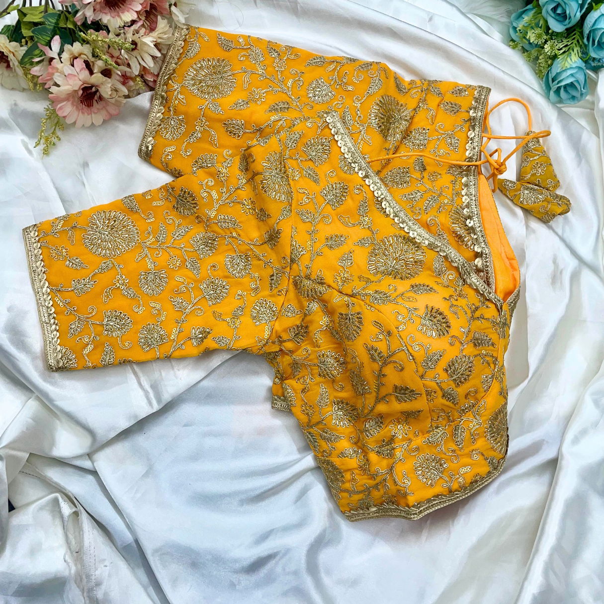 Make a bold statement with this stunning black deep neck blouse featuring intricate golden thread embroidery. Perfect for festive and party occasions, this readymade blouse blends tradition with a touch of glamour. Designed for confident women, our readymade blouse offers timeless elegance with unmatched comfort and graceful detailing in every stitch.