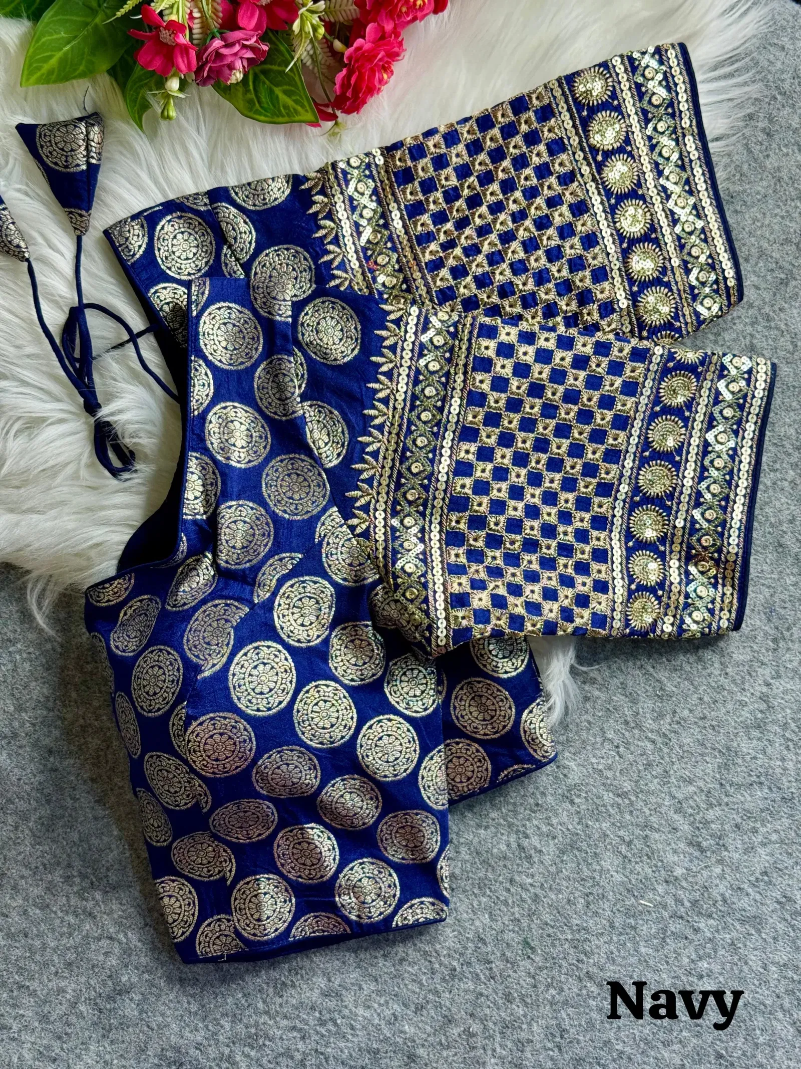 Step into elegance with this exquisite partywear blouse crafted from premium Dola silk, featuring intricate heavy embroidery. Designed for comfort with pure Indo cotton lining, it offers a flattering front-open style, 12-inch sleeves, and heavy padding for a structured fit. Ready in size 38, alterable up to 40 inches, this blouse is perfect for special occasions.