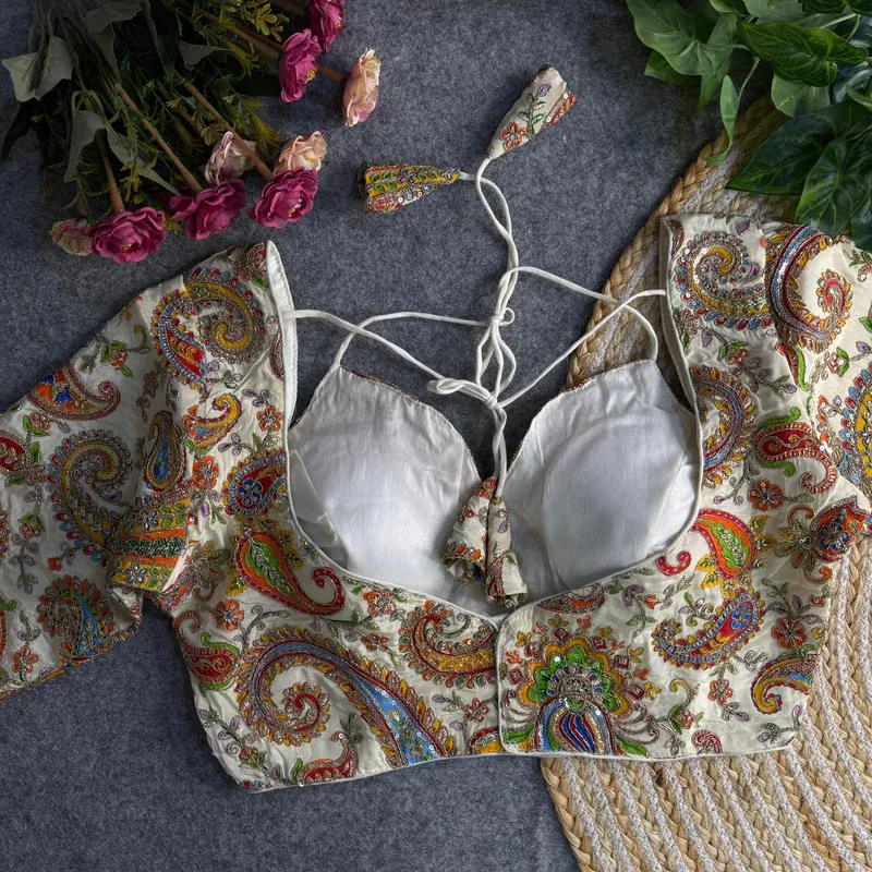This stunning readymade blouse features exquisite heavy handwork with sequin and codding thread embroidery, designed to make a statement. Crafted from pure soft crepe silk, this partywear blouse offers a luxurious feel and rich look. The readymade blouse is perfect for festive and traditional wear, combining elegance with premium craftsmanship.