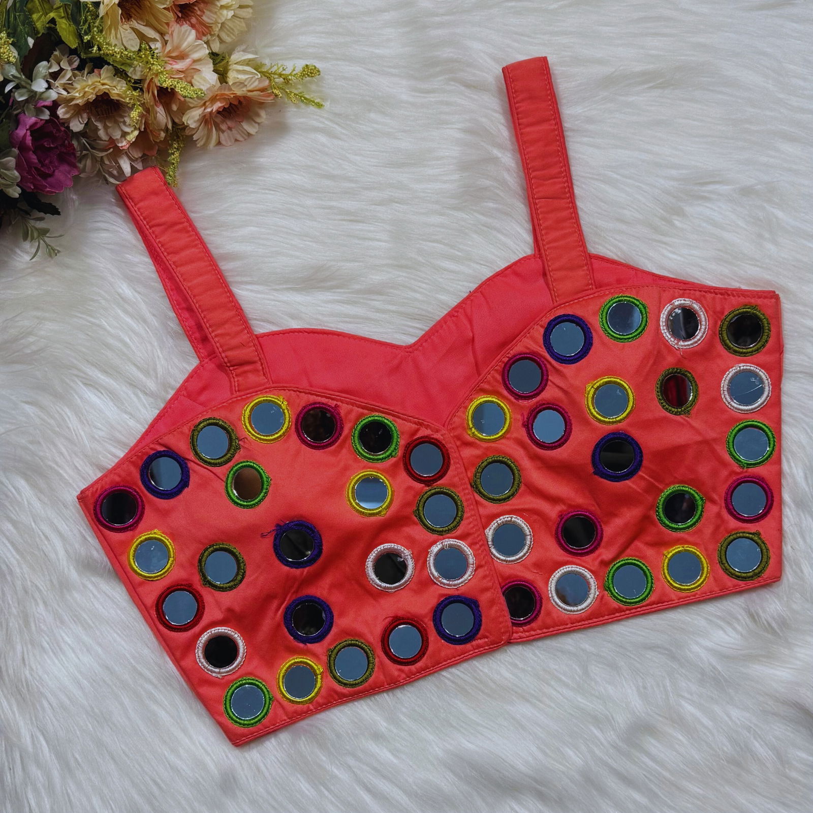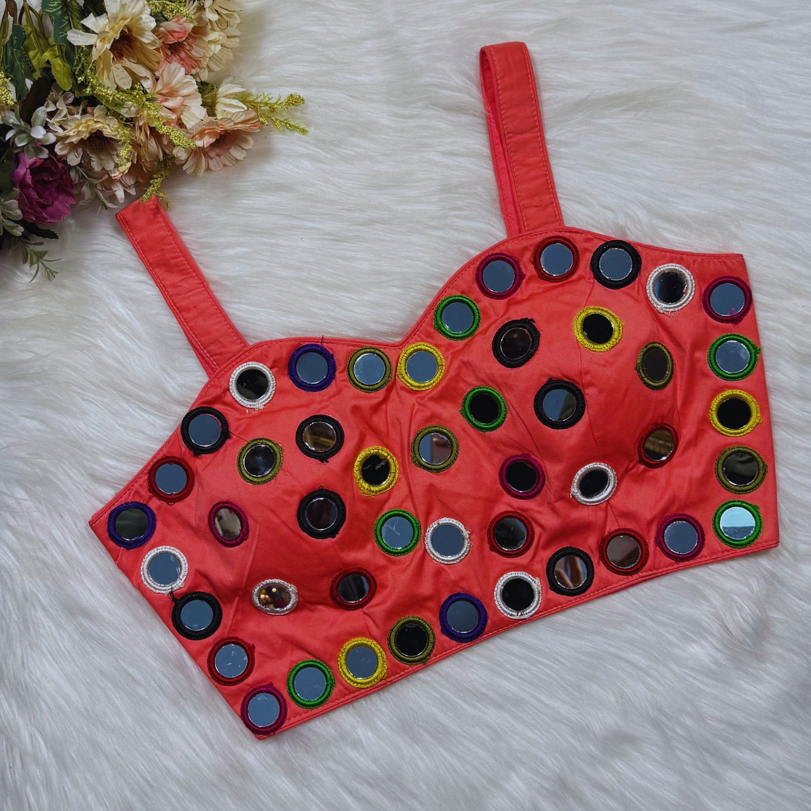 Celebrate this Navratri in style with our vibrant Silk mirror work blouse. Adorned with intricate Mirror work, it’s a perfect choice for garba nights and festive occasions. The soft cotton lining, perfect fit, and traditional charm make it a must-have partywear blouse for your ethnic wardrobe.