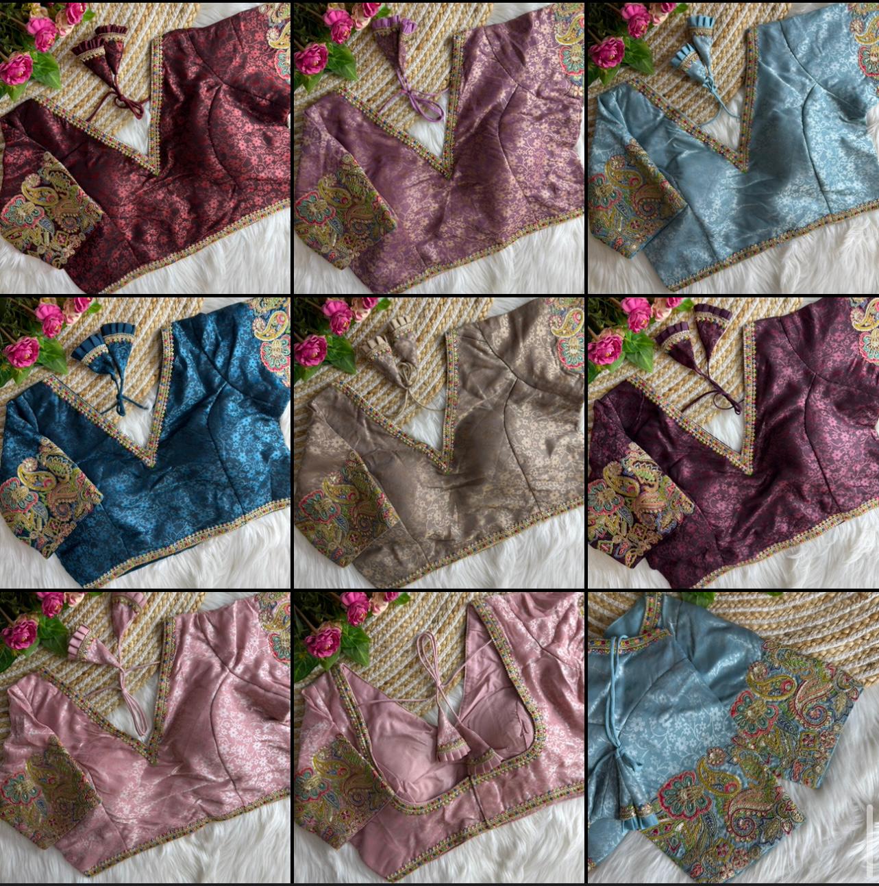 Make a lasting impression with our jacquard designer blouse, perfect for weddings and festive parties. Crafted from rich fabric and adorned with beautiful multi embroidery work, this partywear blouse features a comfortable fit and stunning detail. A must-have for your ethnic wardrobe to shine in any celebration.