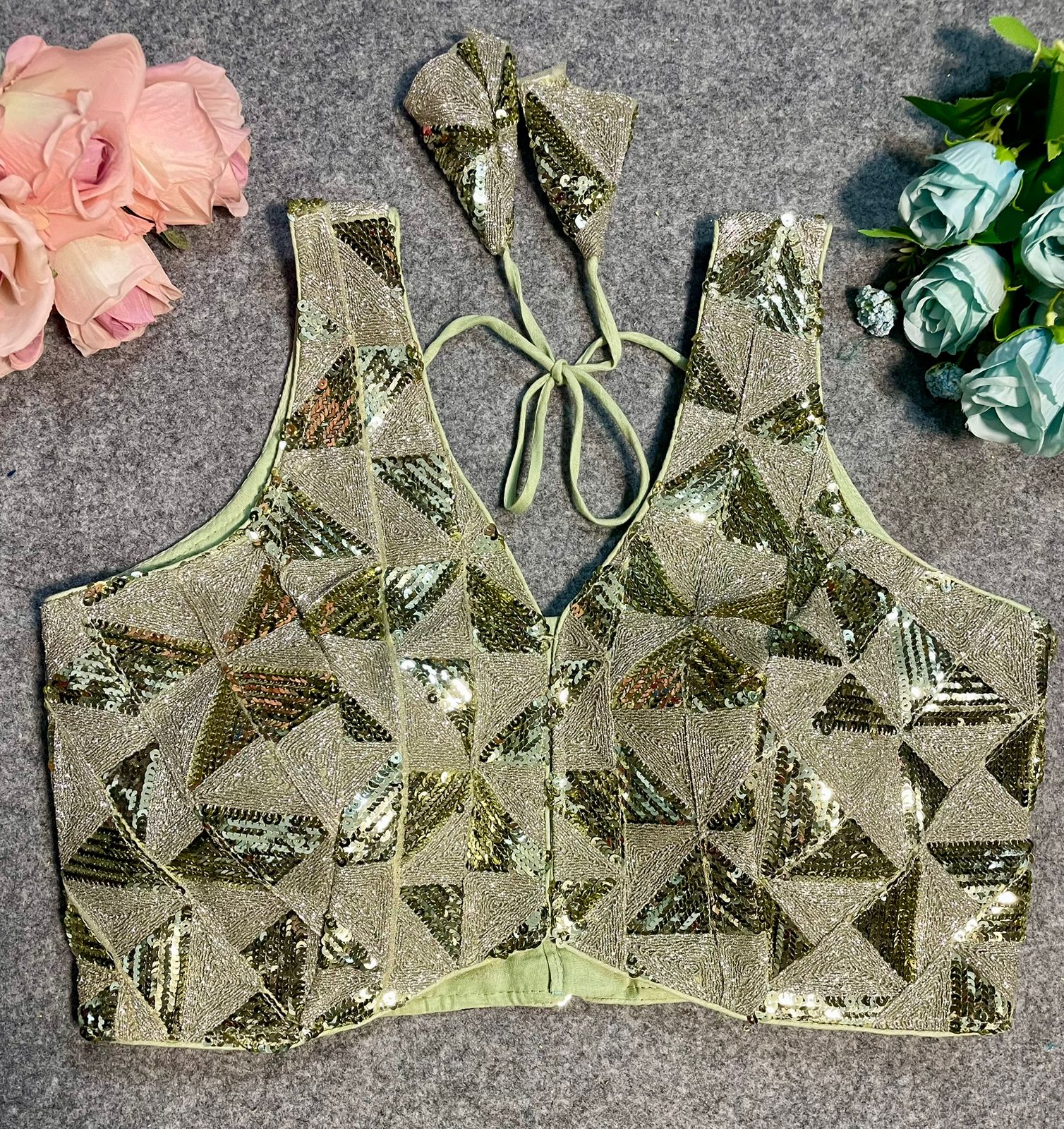 Turn heads with this stunning black sequin work readymade blouse, crafted for a bold and glamorous look. Its intricate geometric sequin pattern creates a dazzling finish, making it perfect for partywear and cocktail functions. Elevate your ethnic wardrobe with this black readymade blouse that offers style, sparkle, and supreme elegance.
