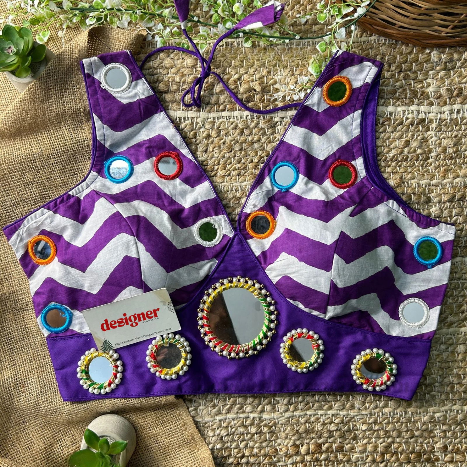 Shine bright this festive season with our Pure Cotton Mirror Work Navratri Blouse. Made for Garba nights and Dandiya events, this readymade blouse features handcrafted original mirror work on pure cotton fabric. Lightweight and breathable, it's the perfect ethnic pick for your Navratri outfit. Celebrate tradition with a modern flair.