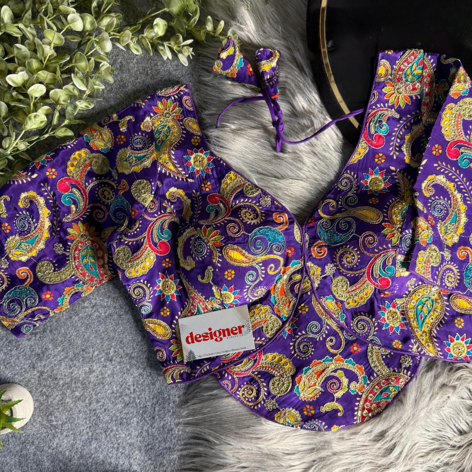 Elevate your ethnic look with this Pure Crepe Silk readymade blouse featuring designer position work. Back-open with hooks, 10+ inch sleeves and built-in padding deliver comfort and shape. A luxurious partywear and festive essential, tailored to flatter and easily alterable, blending modern grace with traditional charm for every special occasion.