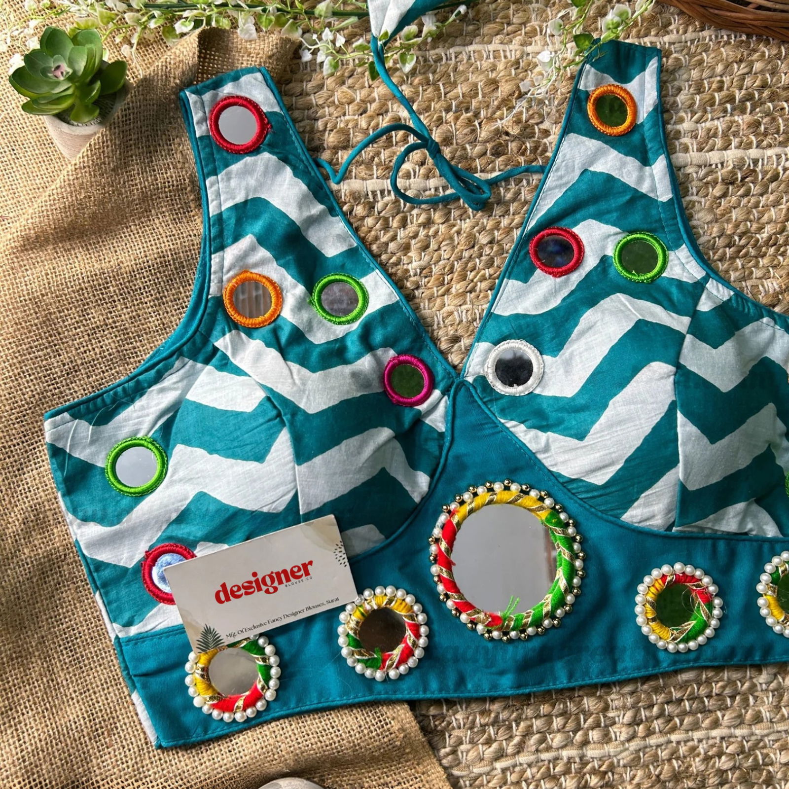 Shine bright this festive season with our Pure Cotton Mirror Work Navratri Blouse. Made for Garba nights and Dandiya events, this readymade blouse features handcrafted original mirror work on pure cotton fabric. Lightweight and breathable, it's the perfect ethnic pick for your Navratri outfit. Celebrate tradition with a modern flair.