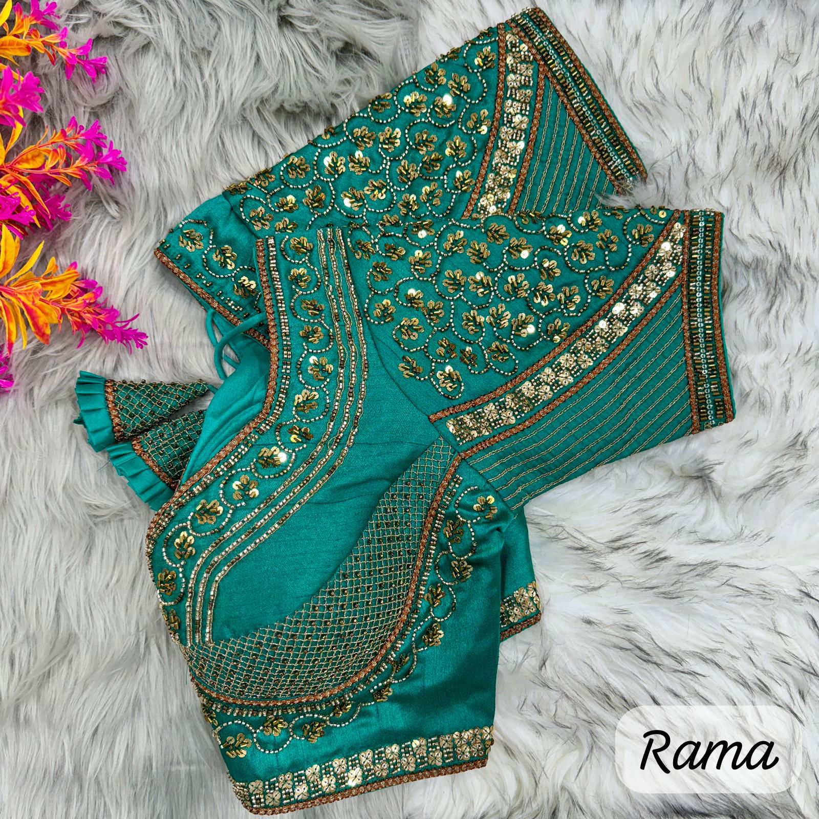 Sabyasachi Handwork Italian Silk Bridal Blouse — A luxurious bridal blouse crafted from premium Italian silk, adorned with exquisite Sabyasachi-style hand embroidery. Designed for timeless elegance on your special day. Length 15 inches, size alterable from 34 to 44 inches. Perfect for pairing with bridal sarees and lehengas for a royal, graceful look.