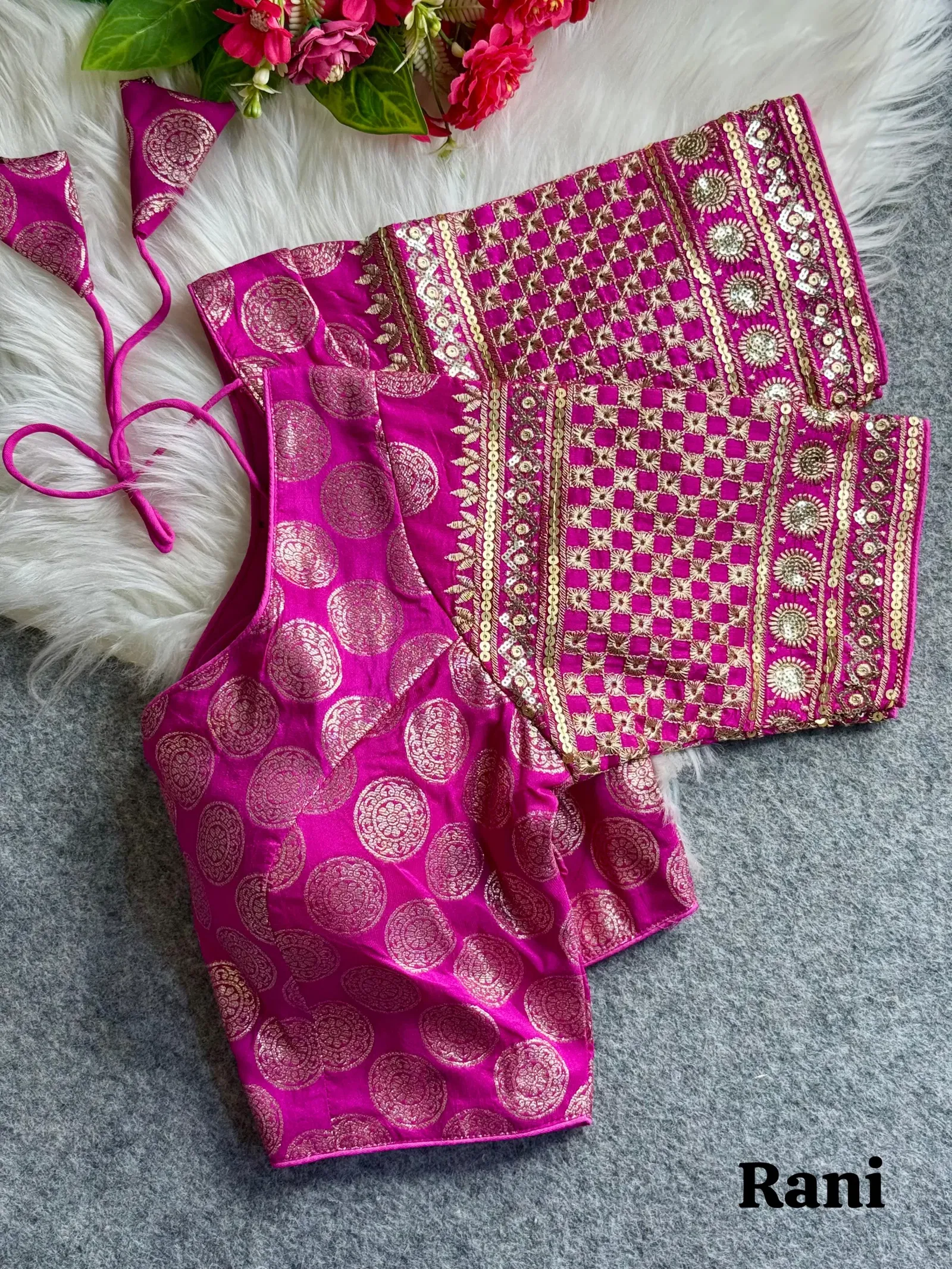 Step into elegance with this exquisite partywear blouse crafted from premium Dola silk, featuring intricate heavy embroidery. Designed for comfort with pure Indo cotton lining, it offers a flattering front-open style, 12-inch sleeves, and heavy padding for a structured fit. Ready in size 38, alterable up to 40 inches, this blouse is perfect for special occasions.