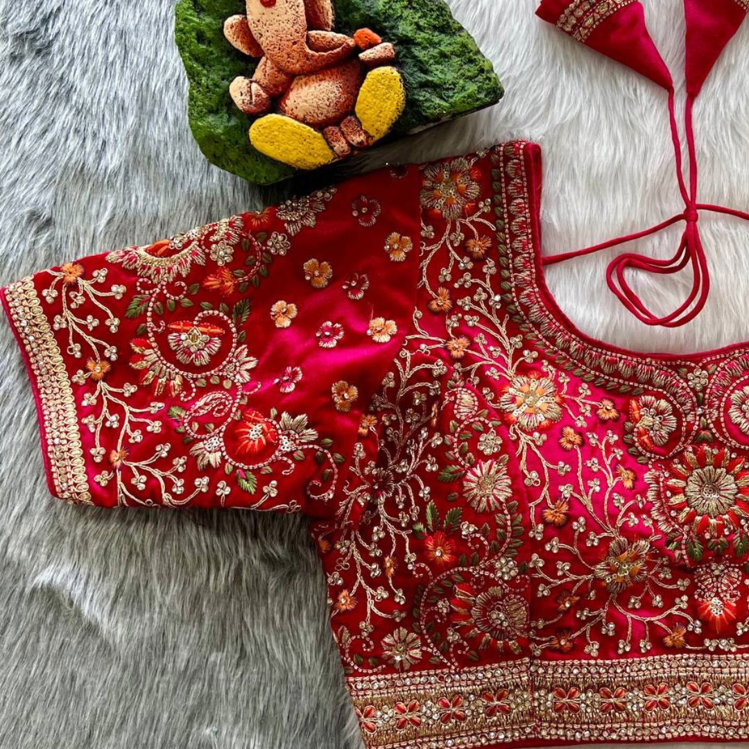 Made from luxurious heavy pure soft velvet with tricot fuising, the blouse ensures both comfort and opulence. Its versatile plus size, ready up to 42 inches, and 10-inch sleeves cater to diverse body types. The beautiful bridal design features heavy stitching, padded support, and handmade hooks, complemented by the allure of a back-open style.