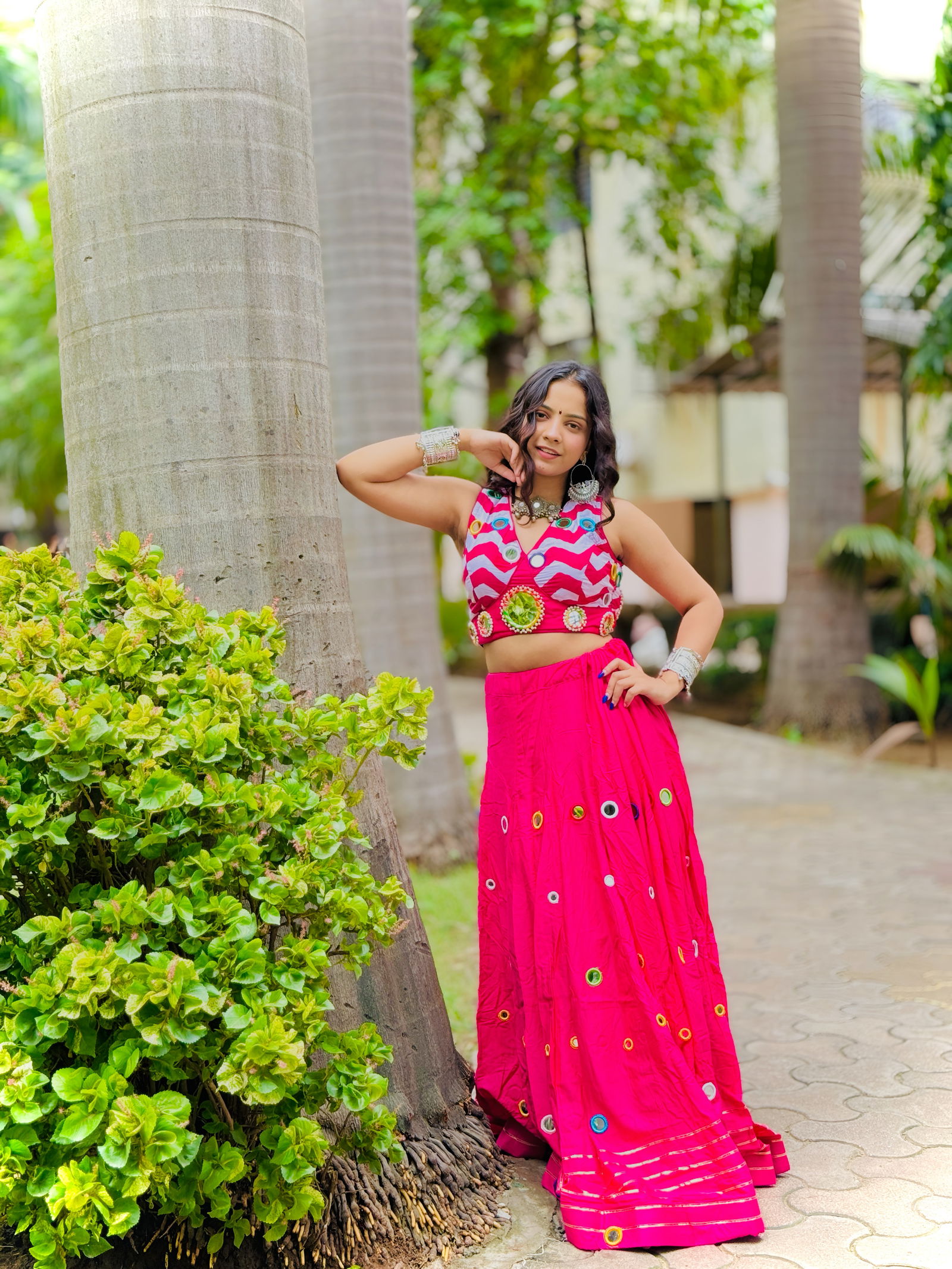 This readymade chaniya is designed to elevate your Navratri celebrations with stunning multi-work detailing and luxurious heavy lace borders. Crafted for comfort and style, it’s a perfect blend of traditional vibrance and modern flair. Celebrate all nine nights in grace and glam with this statement readymade chaniya.