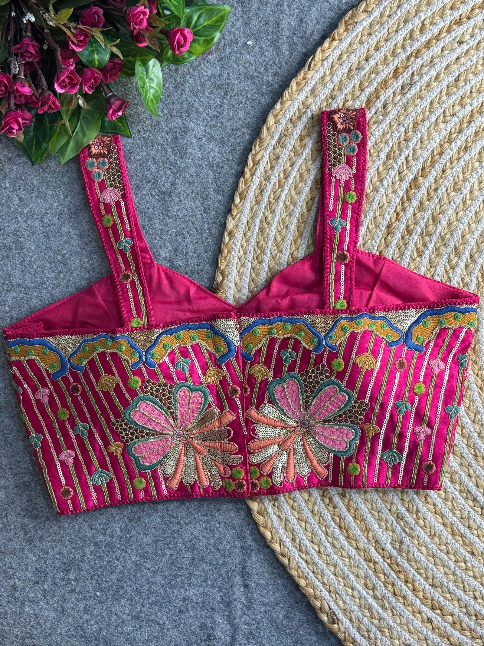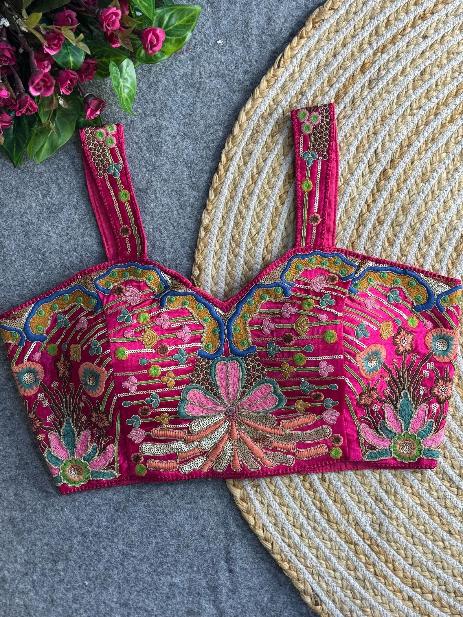 Celebrate this Navratri in style with our vibrant Gaji Silk designer blouse. Adorned with intricate multi embroidery work, it’s a perfect choice for garba nights and festive occasions. The soft cotton lining, perfect fit, and traditional charm make it a must-have partywear blouse for your ethnic wardrobe.