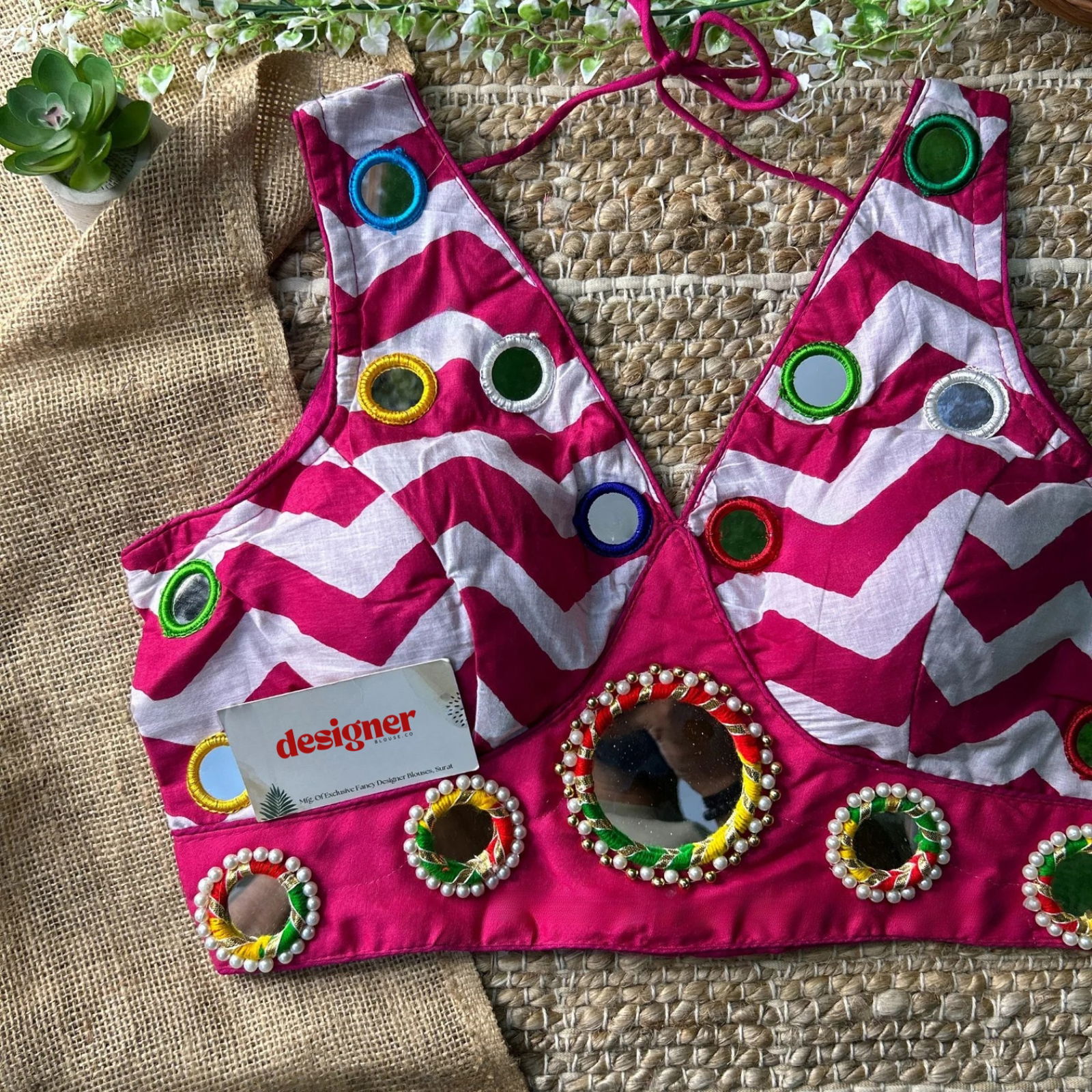 Shine bright this festive season with our Pure Cotton Mirror Work Navratri Blouse. Made for Garba nights and Dandiya events, this readymade blouse features handcrafted original mirror work on pure cotton fabric. Lightweight and breathable, it's the perfect ethnic pick for your Navratri outfit. Celebrate tradition with a modern flair.