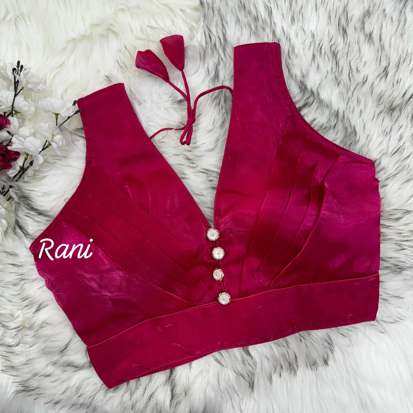 Elevate your ethnic style with this Sabyasachi-inspired pure nylon jacquard blouse. Featuring intricate detailing, a luxurious nylon jacquard fabric, and a comfortable pure Indo cotton lining, it’s perfect for parties and special occasions. Designed with heavy stitching, padded comfort, and a back-open style, it’s alterable from 38 to 40 inches for a perfect fit.