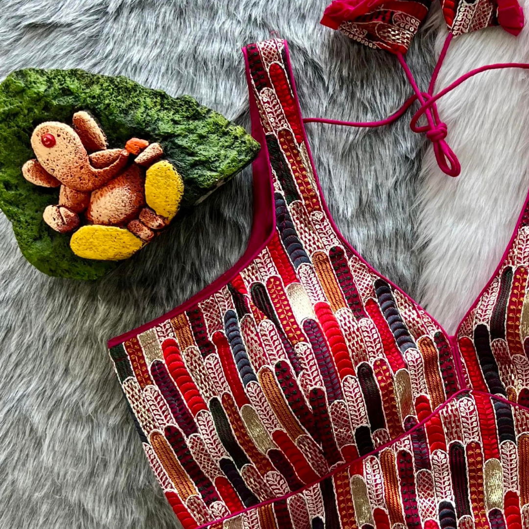 Introducing our exquisite Fox Georgette Embroidered Saree with Emboss Print, a perfect blend of sophistication and style. This stunning saree boasts intricate embroidery work and a unique emboss print that adds a touch of elegance to your ensemble. The 12-inch long sleeves complement the overall design, while the open-back with hooks enhances the glamour. Crafted from high-quality Fox Georgette fabric, this saree ensures both comfort and grace. The pad adds structure, and with a height of 15 inches, it effortlessly drapes to perfection. This free-size saree, initially at 38 inches, is ready to be altered up to 42 inches for a customized fit. Elevate your wardrobe with this timeless piece, a true embodiment of refined fashion.