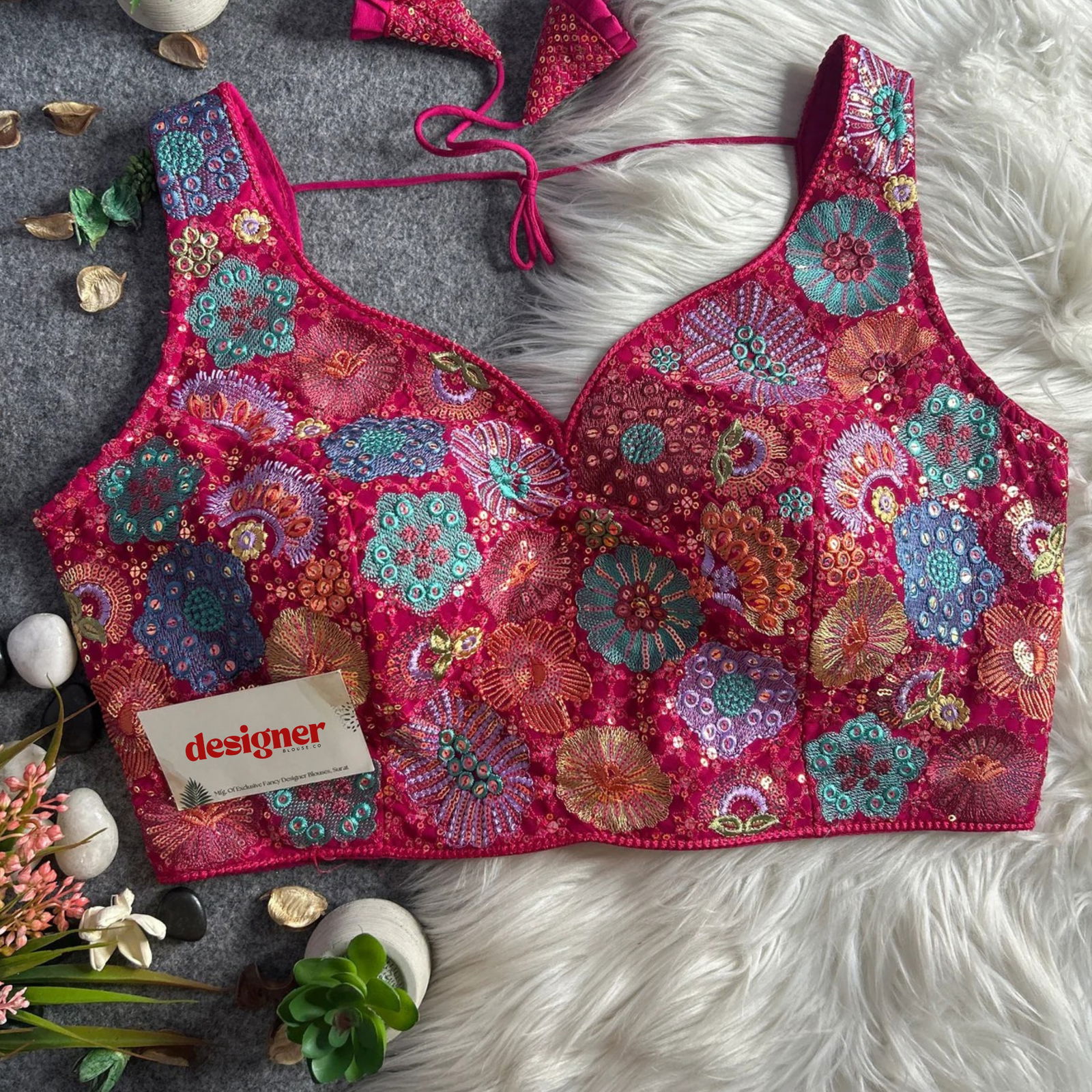 Add glamour to your ethnic wardrobe with this beautiful heavy multi-thread and sequin work blouse. Crafted from premium heavy fox georgette, this blouse features stunning embroidery and sequin detailing, perfect for weddings, parties, and festive occasions.