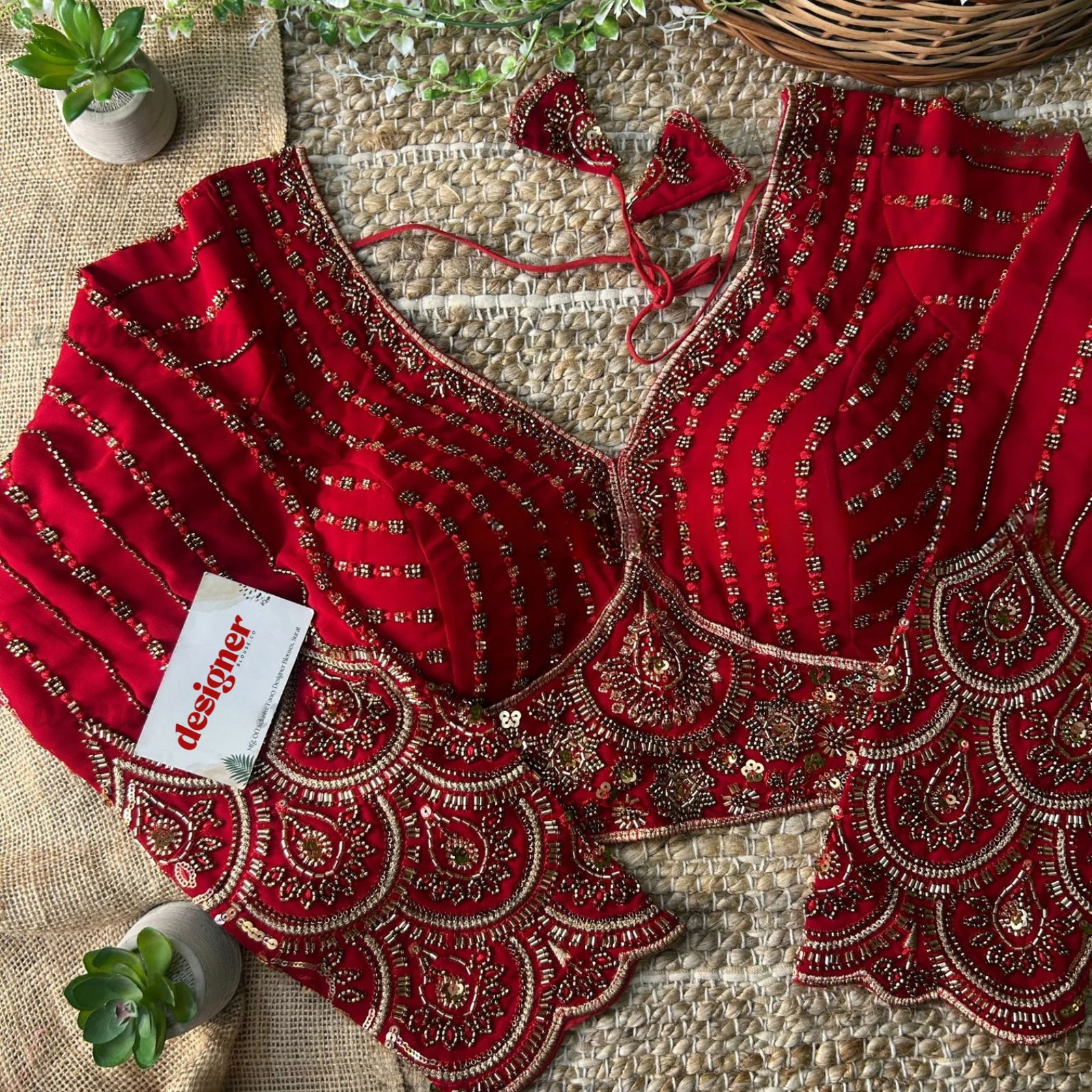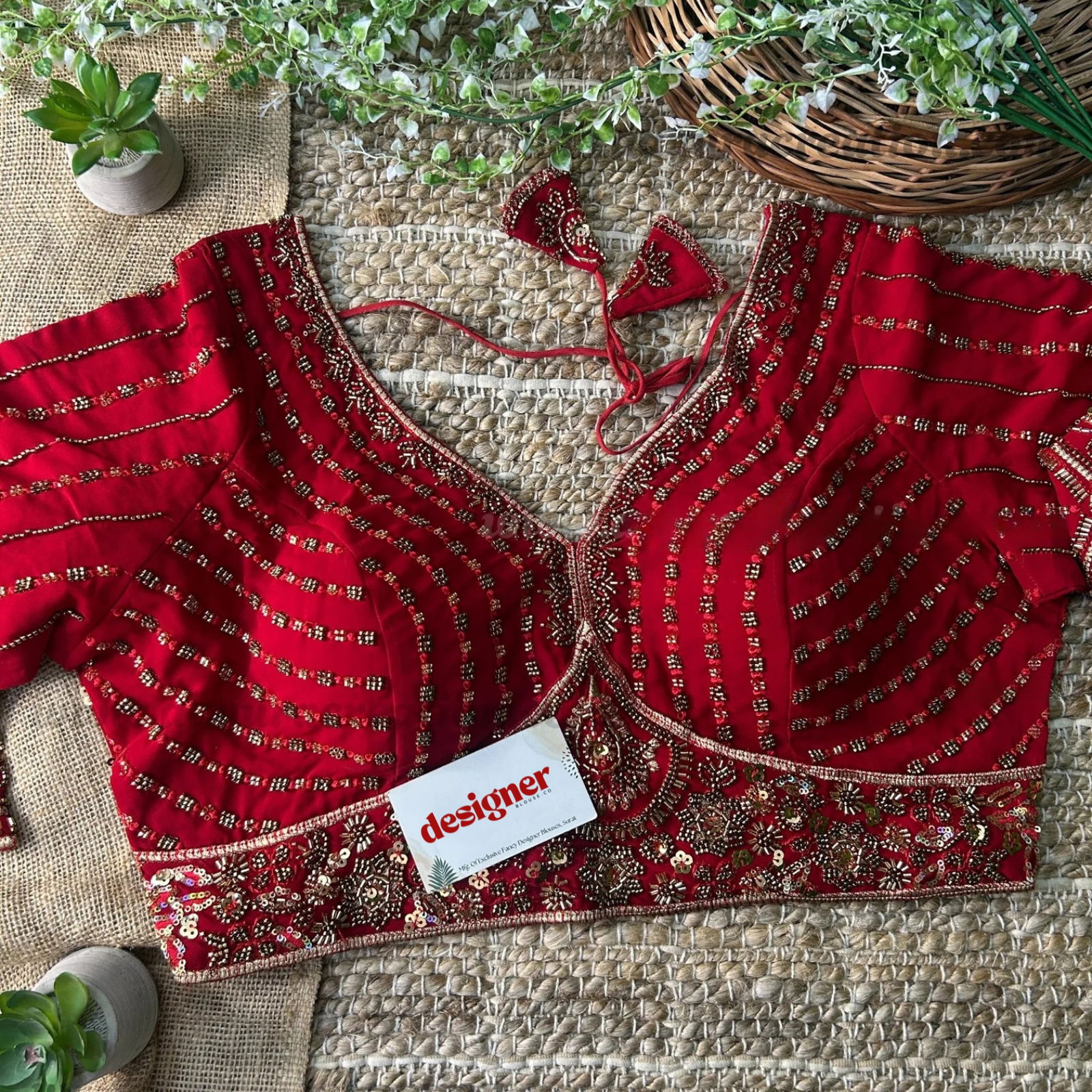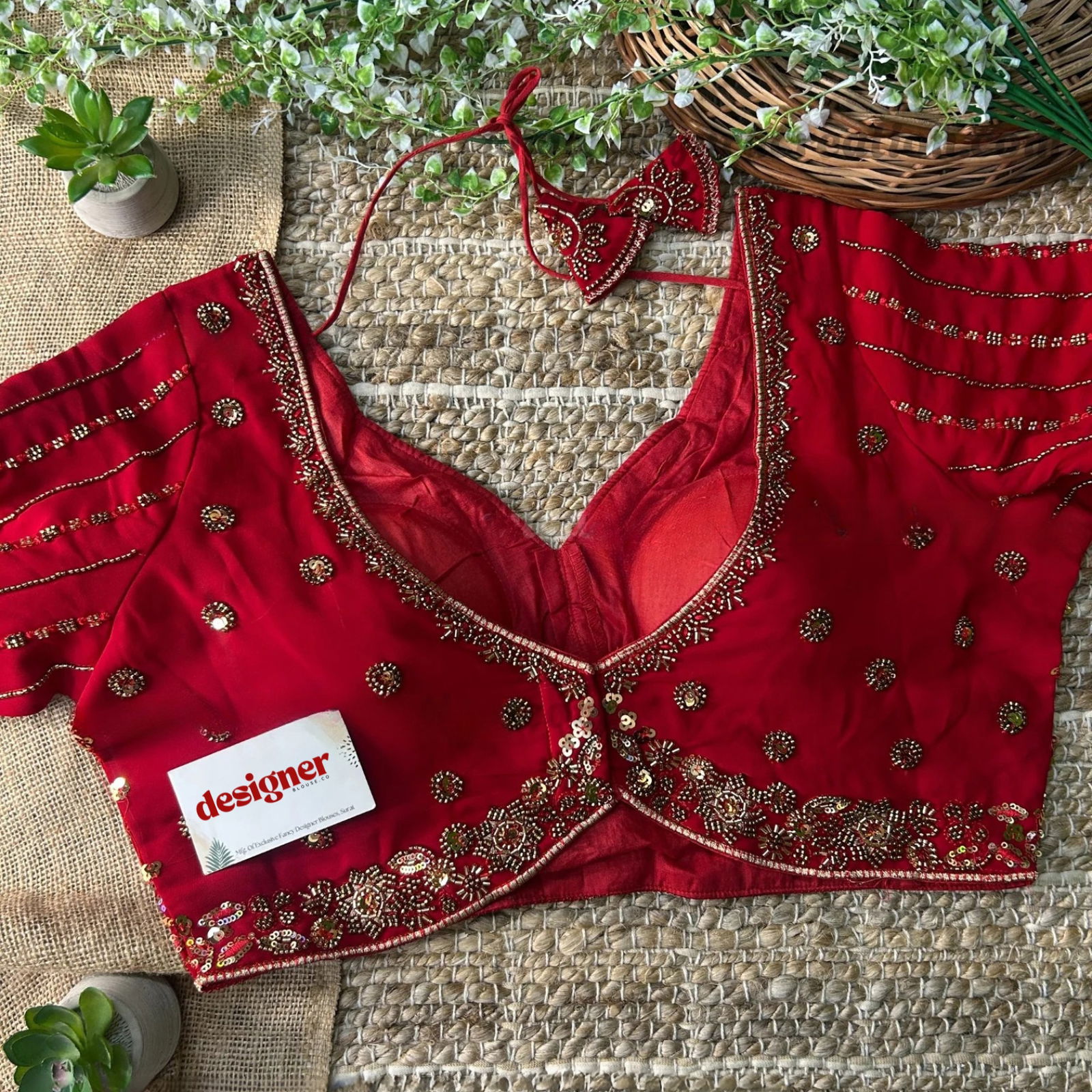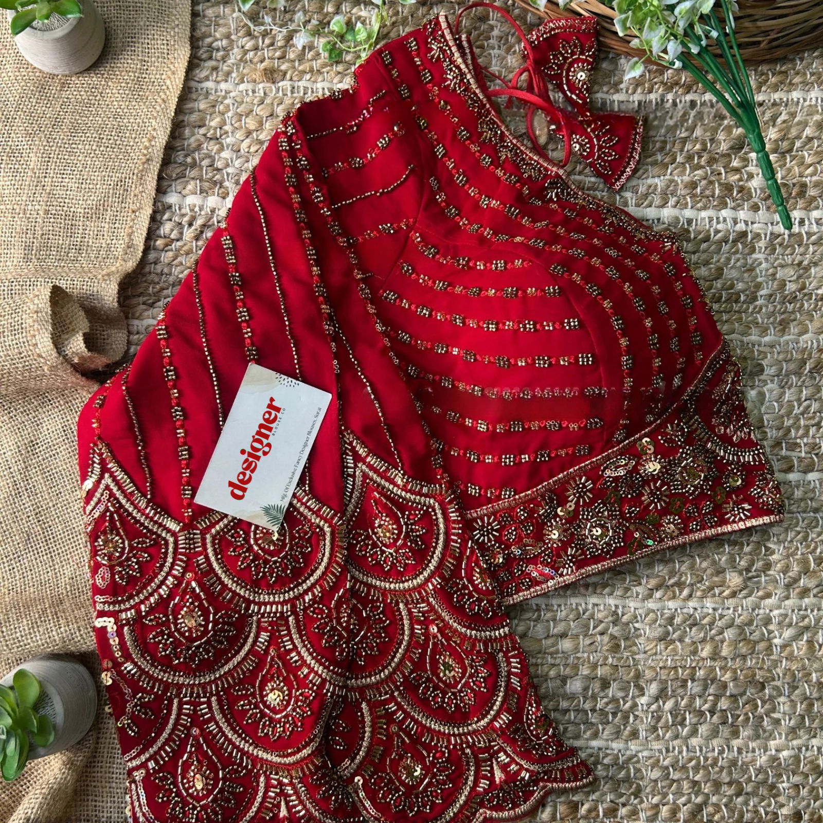 Elevate your ethnic charm with this elegant readymade designer blouse in Pure Fox Georgette. Adorned with detailed hand embroidery and beadwork on the front and sleeves, this long sleeve blouse is a perfect pick for weddings and festive occasions. A luxurious, padded piece designed for comfort and graceful appeal.