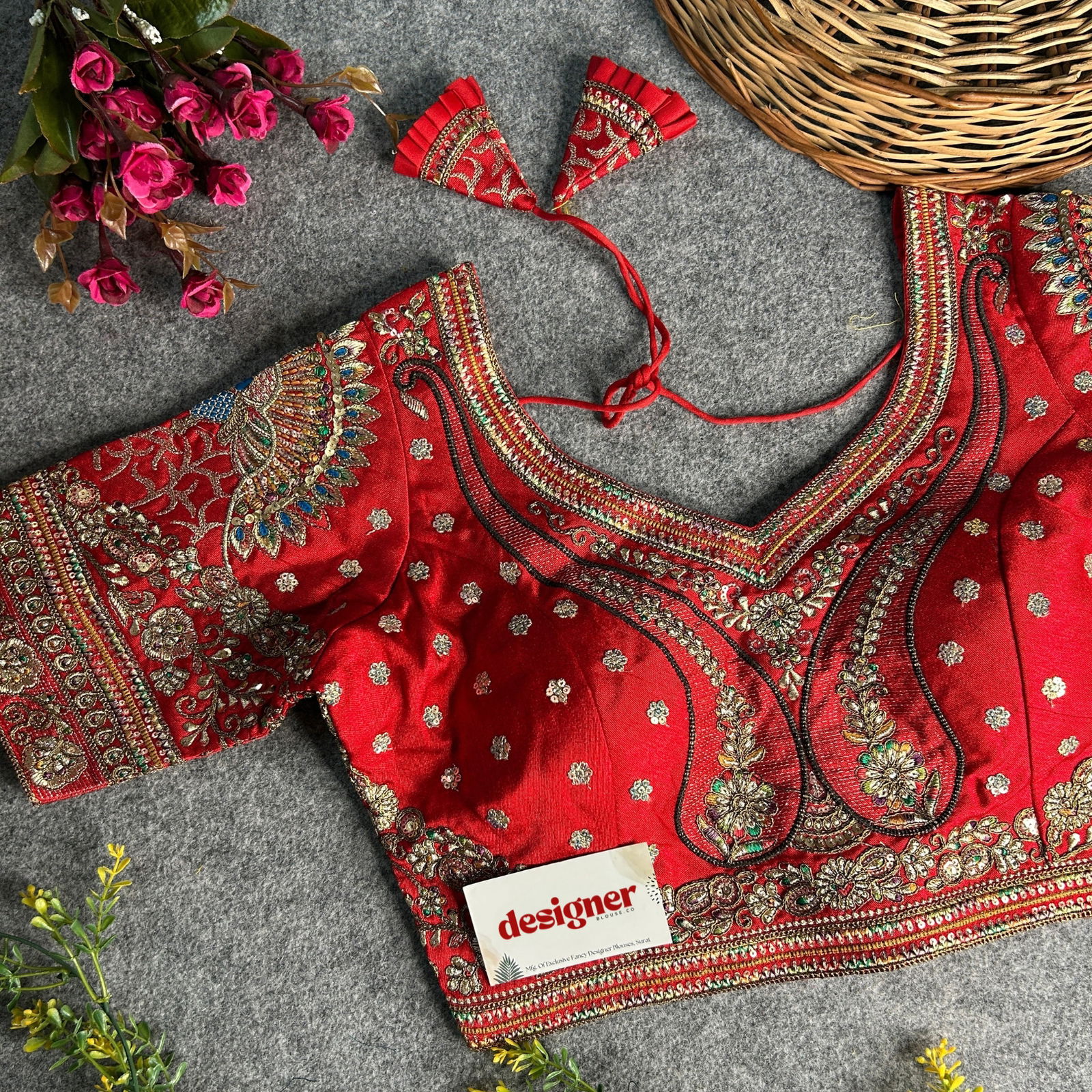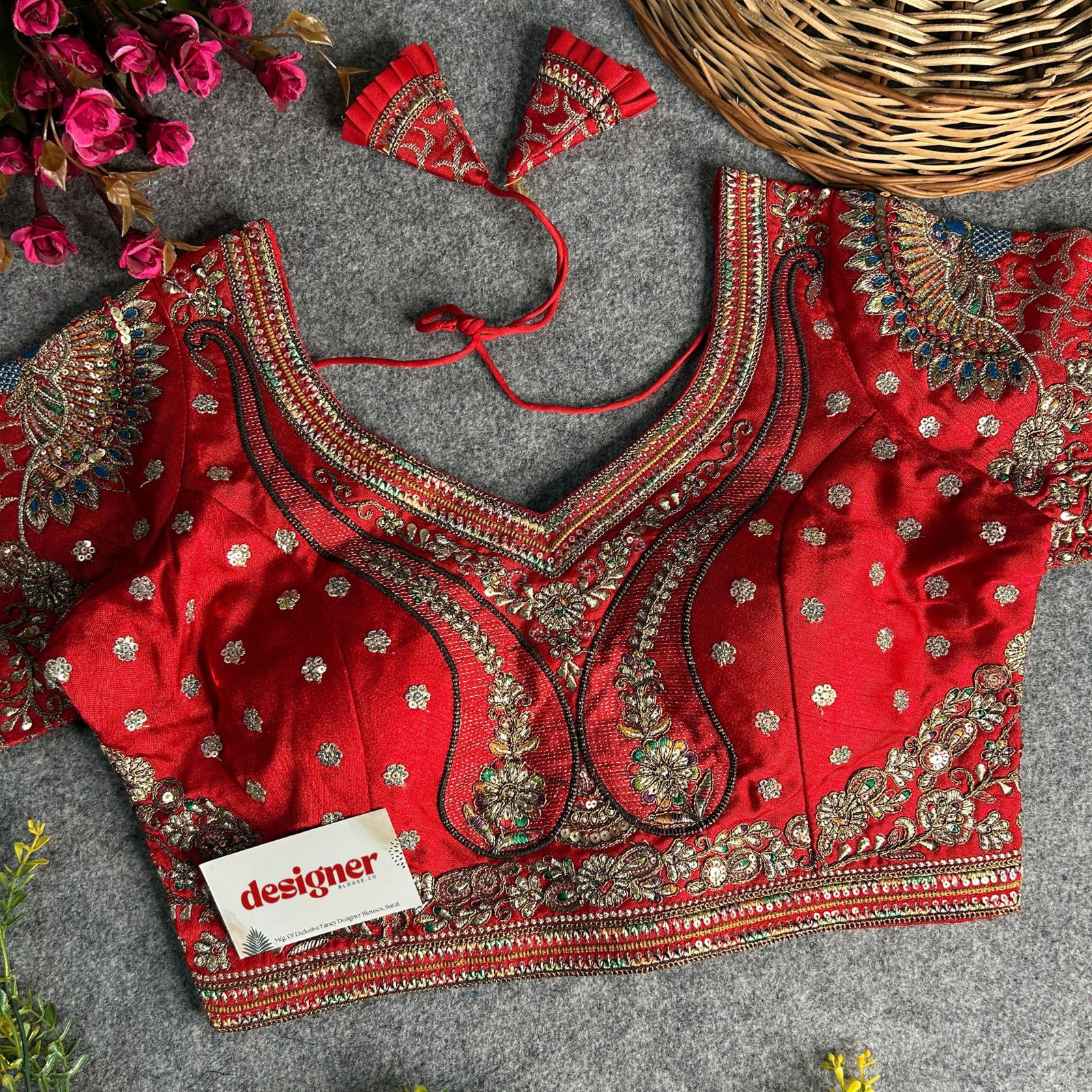 Elevate your wedding or party look with this exquisite heavy Italian silk blouse featuring 3D sequin detailing and unique embroidery work. Designed for comfort and glamour, it includes, soft padding, and flawless stitching. The back-open style with handcrafted finishing makes it a standout choice for festive occasions.
