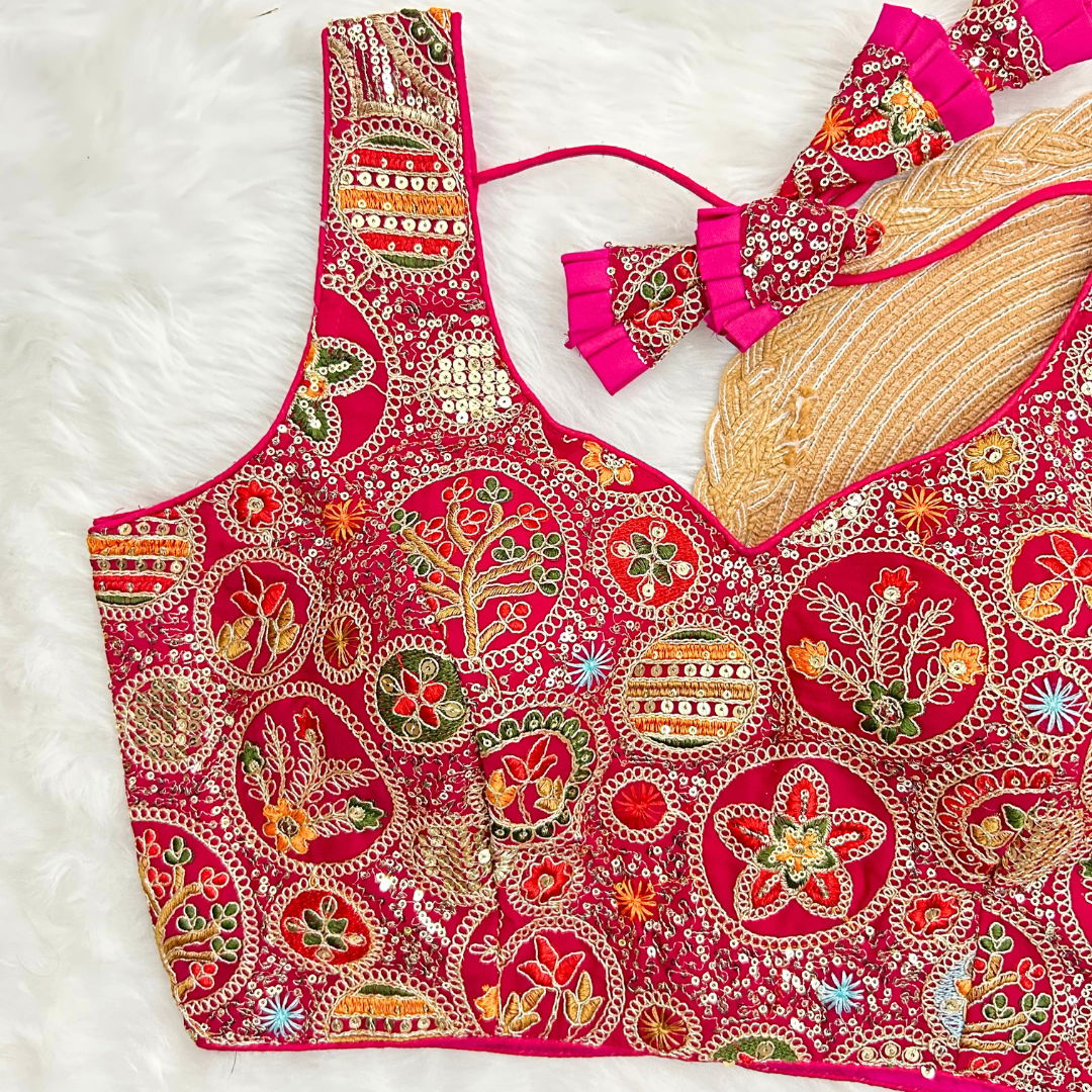 Elevate your style with this Bollywood-inspired Bluming Fox Georgette Blouse, featuring exquisite Codding Embroidery, Thread, and Sequence Work, perfect fitting with stunning finishing and elegant design elements. Blouse Stitched – Yes