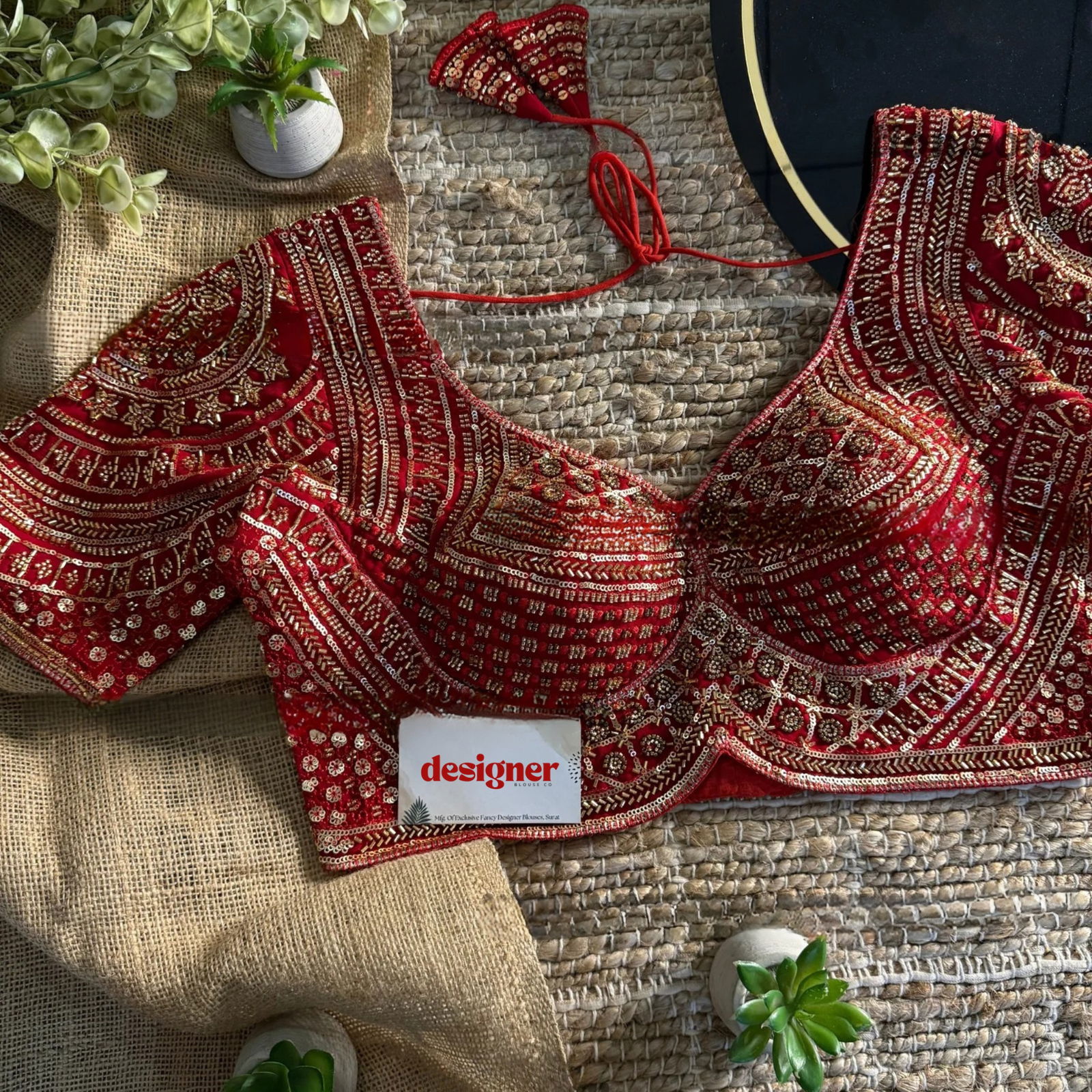 Glow in weddings and festive nights with this Red Color Designer Partywear Blouse featuring a stunning Sabyasachi neck. Crafted in premium pure fox georgette, it’s richly finished with heavy hand embroidery and beadwork on front and sleeves. Soft cotton lining and built-in padding ensure comfort with a secure back-hook closure.