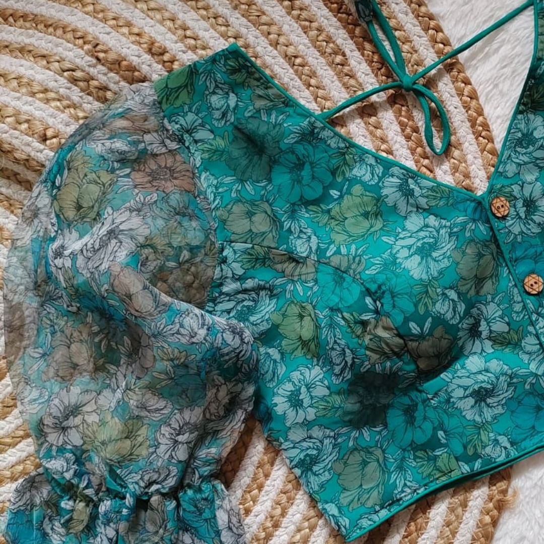 Introducing our exquisite Festival Wear Blouse, a perfect blend of elegance and trendiness. Elevate your festive look with this stunning blouse featuring a beautiful print and a designer-inspired aesthetic. Crafted from high-quality organza fabric, it offers a luxurious feel and a flattering fit for sizes 38 to 42. The 18-inch sleeves add a touch of grace, while the built-in padding ensures comfort and support. Standing at a height of 15 inches, this blouse is a versatile choice for various occasions. Embrace style and sophistication with this must-have addition to your wardrobe, effortlessly enhancing your festive attire.