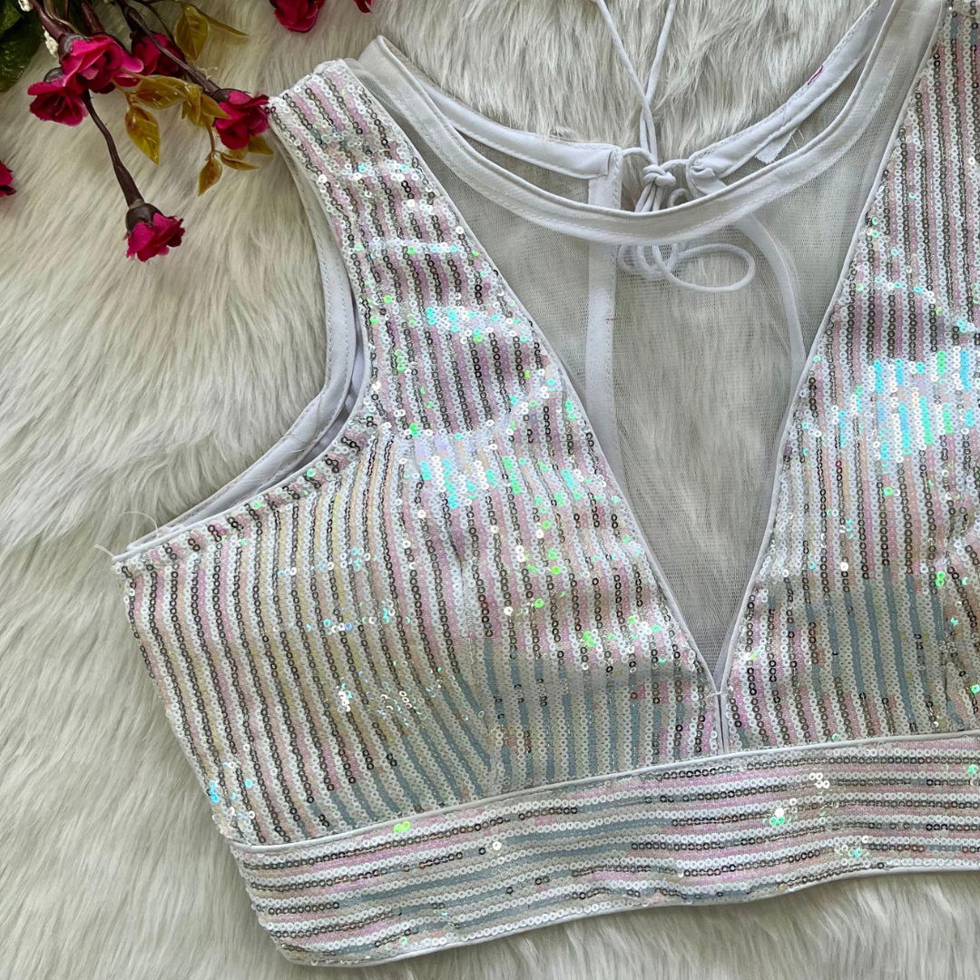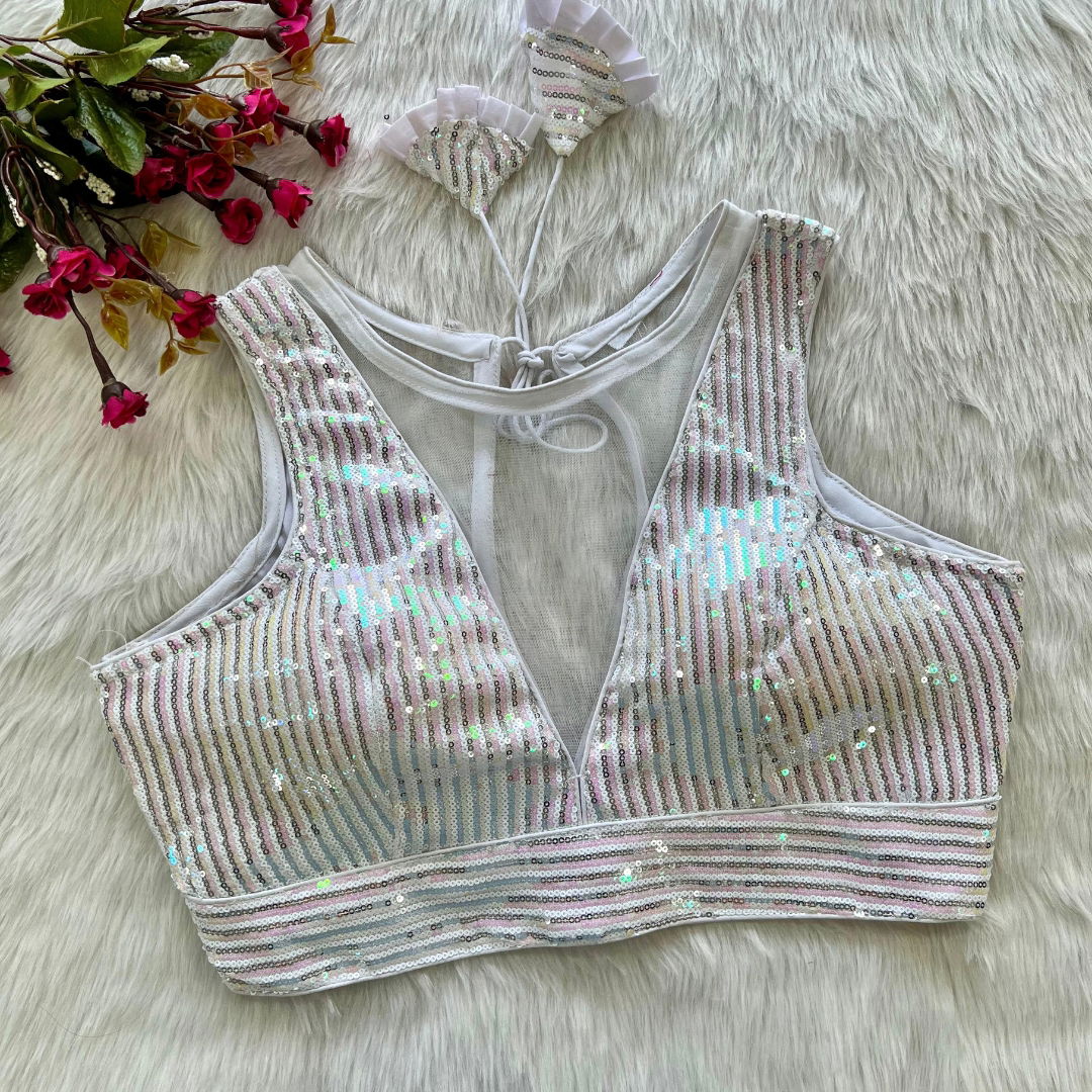 Indulge in glamour with our 'Heavy Imported Net' Blouse. Available in Plus Size 38", it's ready to wear and alterable up to 40 inches, featuring a beautiful design with Heavy Stitching, Heavy Padding, and a chic Back Open Style for a perfect blend of style and comfort