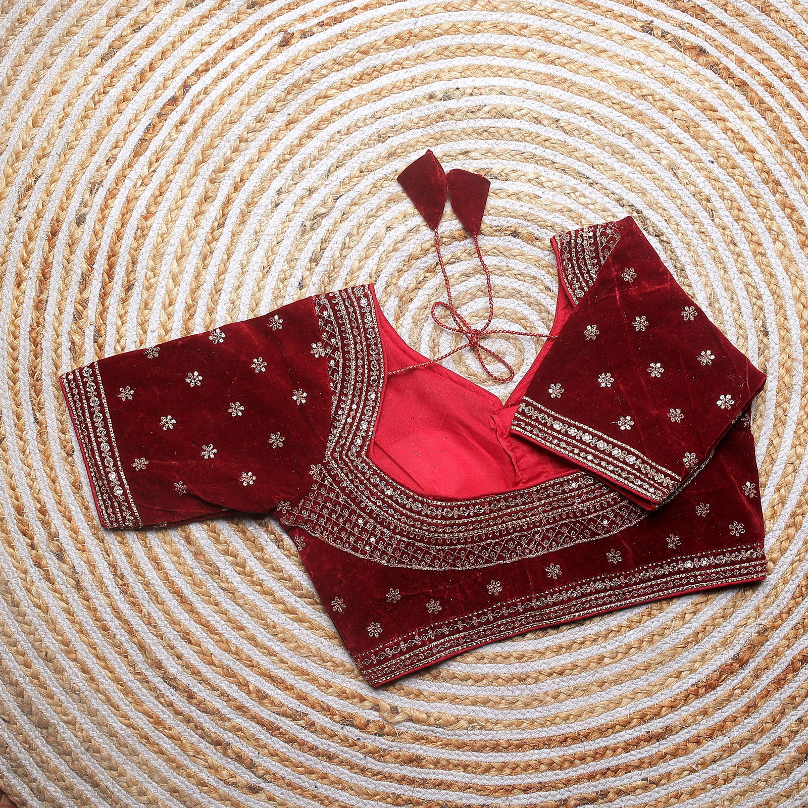 Elegance Redefined: Silky Velvete Blouse adorned with intricate heavy embroidery and delicate sequence touchup. Elevate your style with this stunning piece, blending luxury and grace for a captivating and stylish look