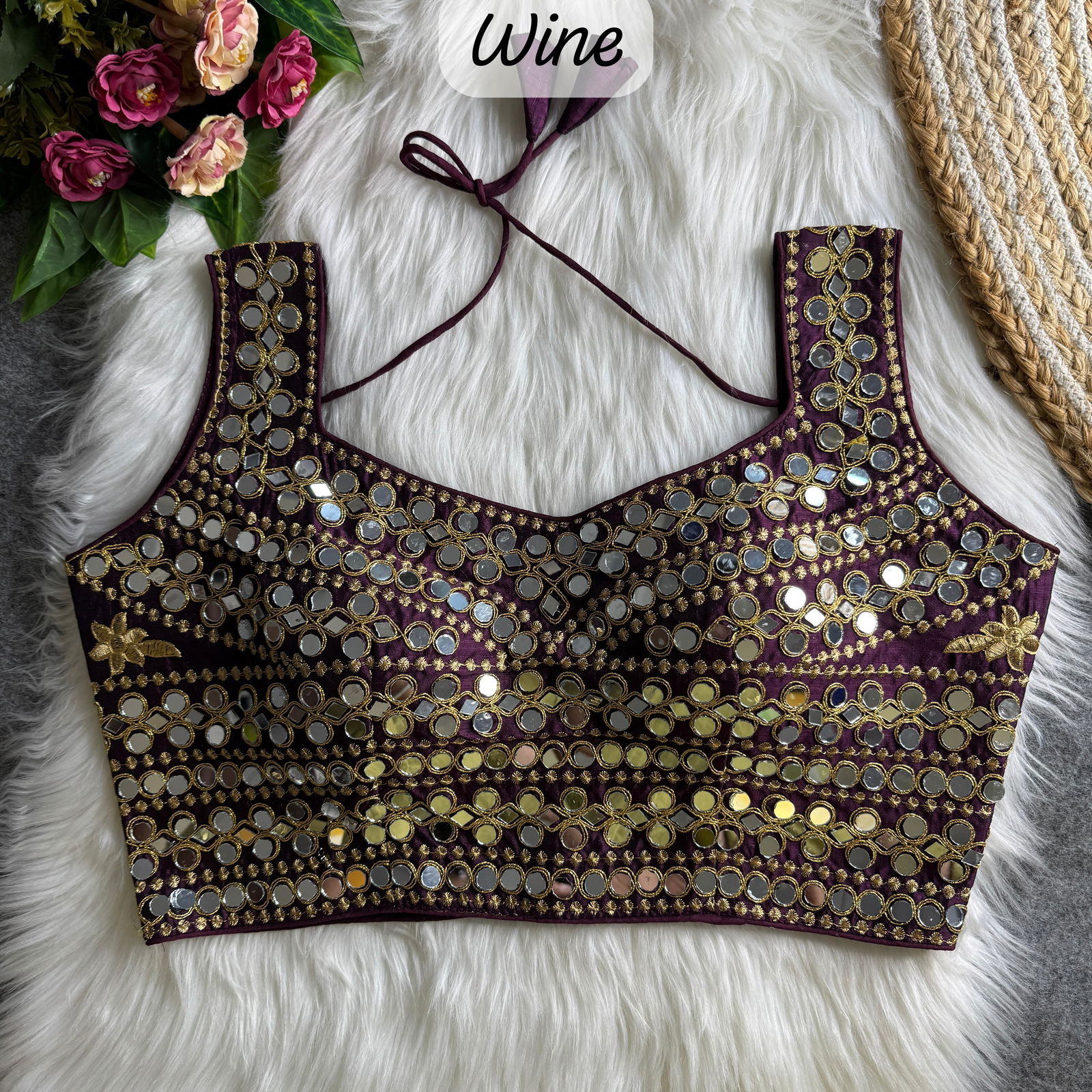 Add a touch of glamour to your wardrobe with our Real Mirror Work Special Partywear Blouse. Crafted from heavy Fantom silk, this Bollywood-inspired design features intricate codding and hand mirror work. The blouse offers a stunning traditional look with heavy padding, a back-open style, and 5” sleeves, ensuring elegance and comfort.