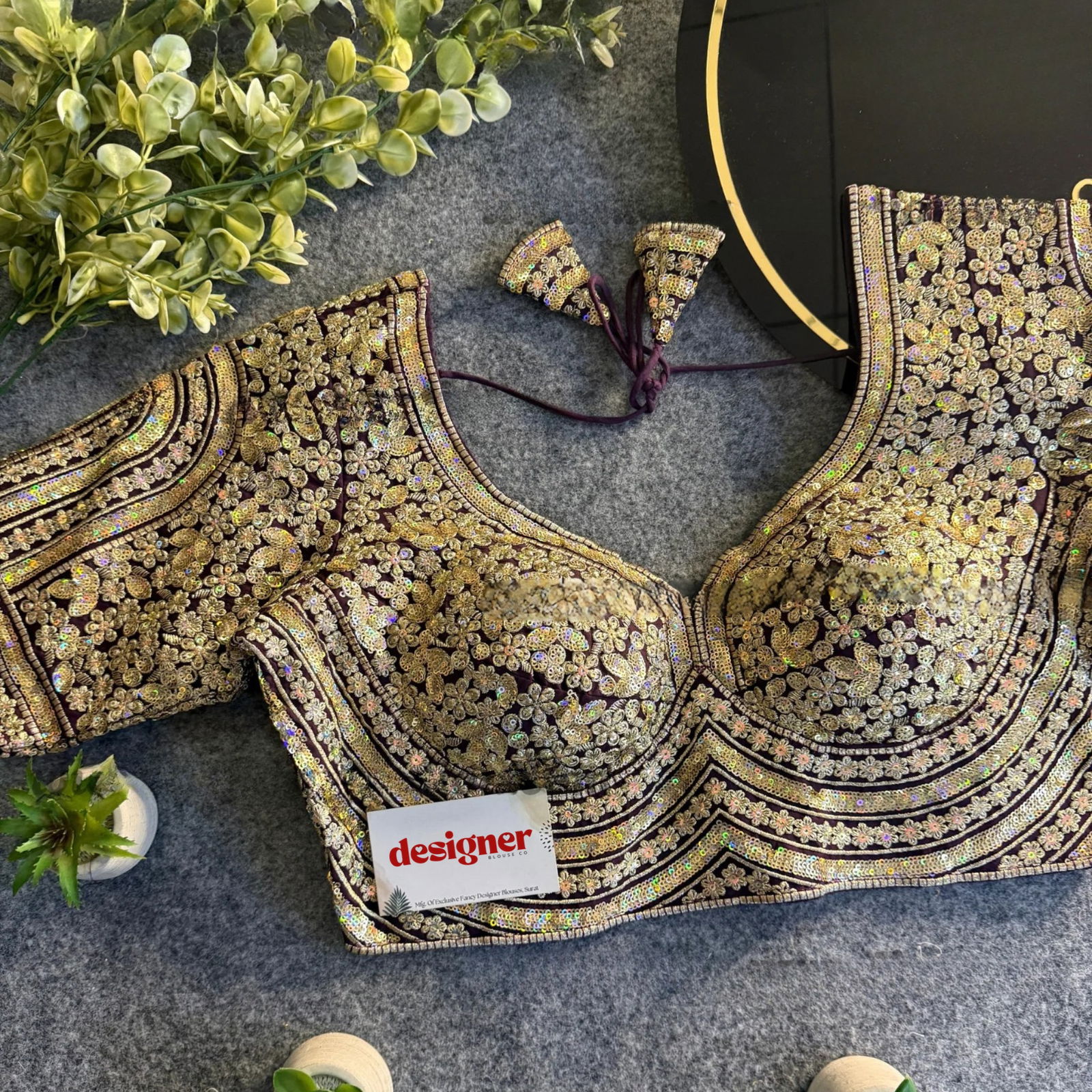 This Italian Silk Sabyasachi neck designer blouse features exquisite heavy coding and shimmering sequin handwork for a true luxury look. With pure cotton lining, built-in pads, full sleeves and back-open hooks, this blouse is perfect for grand wedding, party and festive saree or lehenga styling.