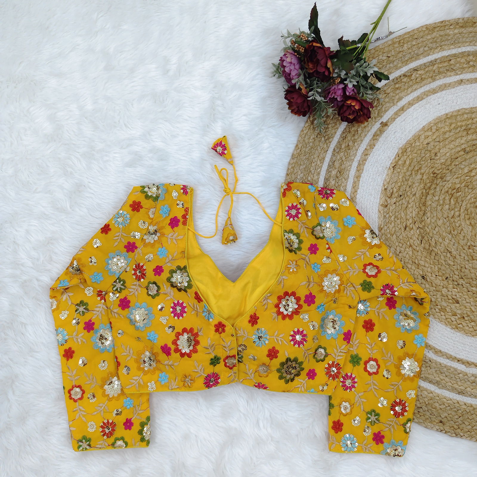 Stunning fox georgette blouse with intricate sequence work, featuring a stylish open-back design